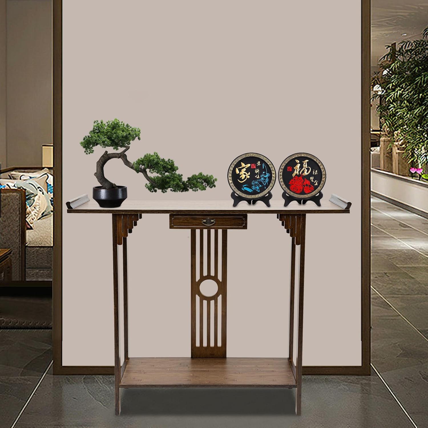 - 【Classical Exterior Design】Walnut wood color tone, bamboo texture, Chinese style hollow fence design, with raised edges on both sides of the top platform, presenting a fresh natural color, light bamboo fragrance, and natural charm, providing you with a peaceful, peaceful, comfortable, and poetic residence.