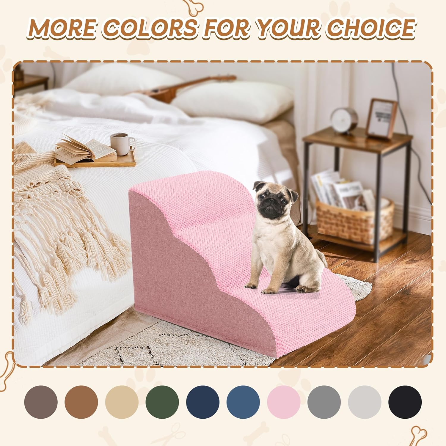 Romrol Dog Stairs Ramp for High Beds Couches, High Density Foam Pet Steps with Durable Non-Slip Waterproof Fabric Cover, Dog Stairs for Small Dogs or Cats or Pets, 3-Step,15 Inch,Pink