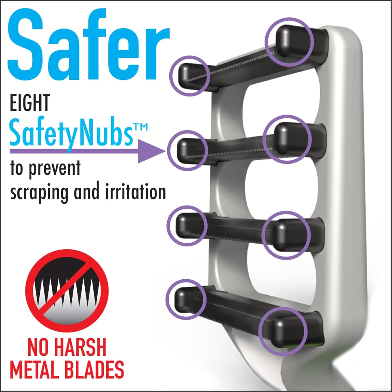 • Safer: Eight SafetyNubs prevent scraping and damage to your petโ€™s skin. Unlike other cat deShedding tools that use harsh metal blades, FUR4 uses an advanced composite carbon fiber for a safer deShedding experience.