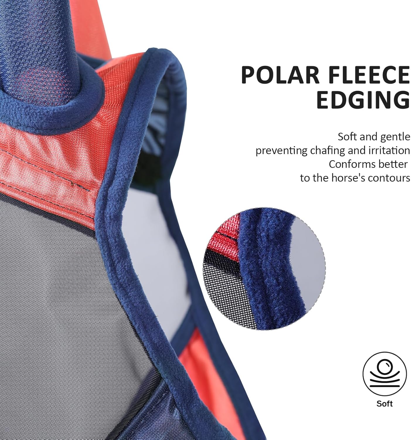 • Soft Fleece Edging: The fleece edging along the seams on the neck and mid-face eliminates rubbing of the horse's hair, reduces gaps, and minimizes pressure marks.