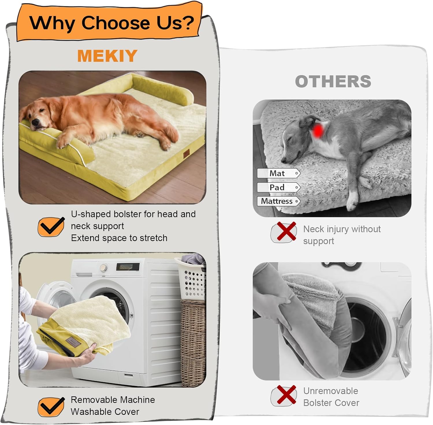 Large Dog Bed Orthopedic Washable | Beds Bolster Pet | XL Large Big Dogs | Memory Foam Couch Sofa | Waterproof with Removable Cover - Ginger Yellow Dog Bed