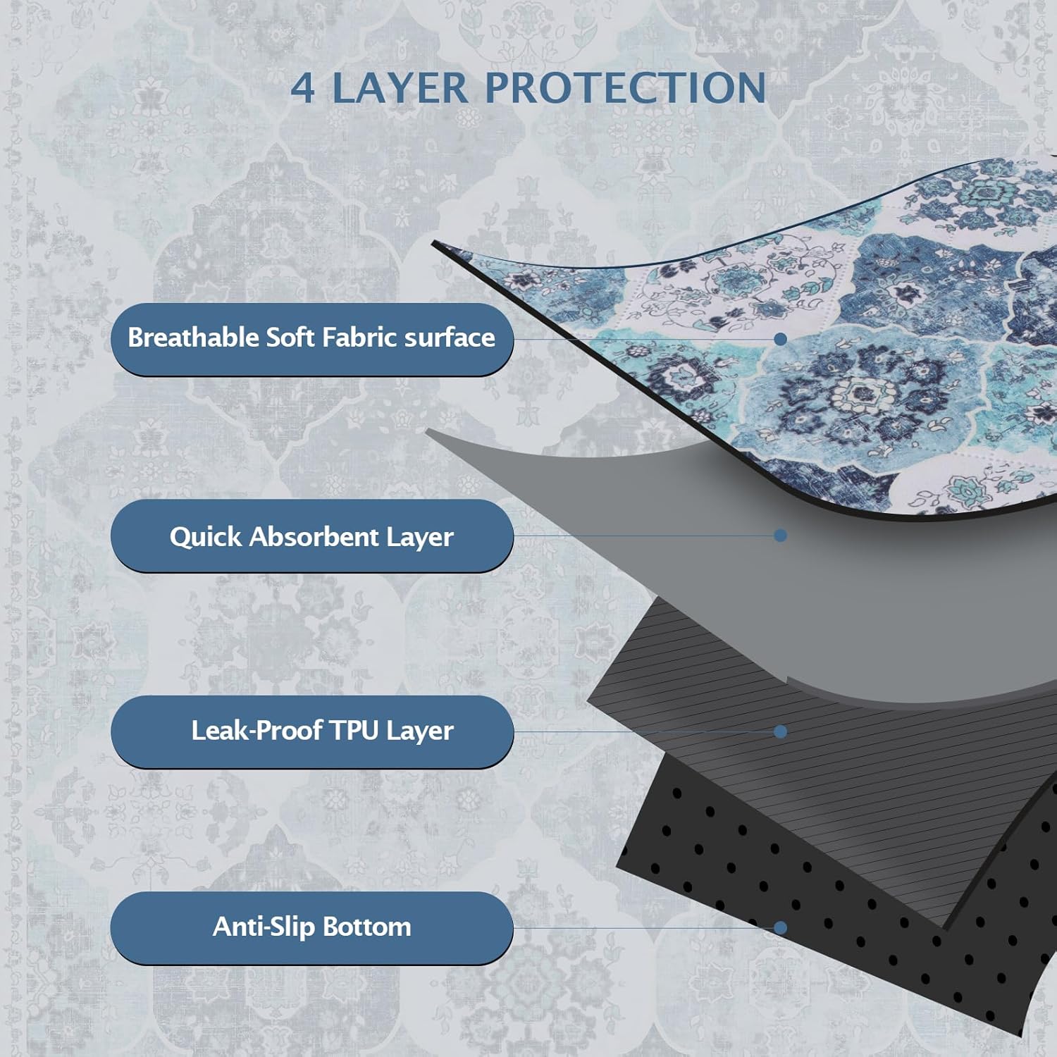 IEUUMLER Washable Pee Pads for Dogs, 1 Pack Reusable Non-Slip Grip, Super Absorbent Waterproof Puppy Pads for Potty Training, Playpen, Crate, Whelping Box EU011 (Blue, 48" x 48")