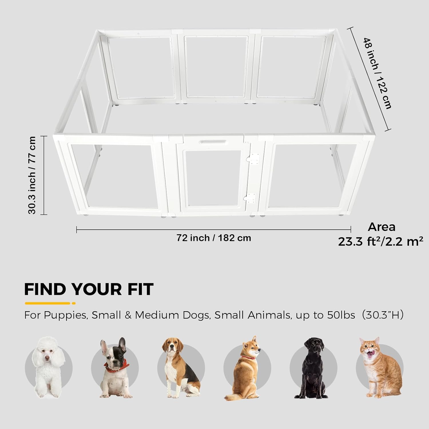 Clear Acrylic Plastic Dog Playpen - Clear Dog Play Pen - Easy Assemble Acrylic Dog Playpen - Puppy Playpen, Cat Playpen, Small Animal Playpen, Dog Play Pen Indoors (White, 30.3" H, 10PCS)