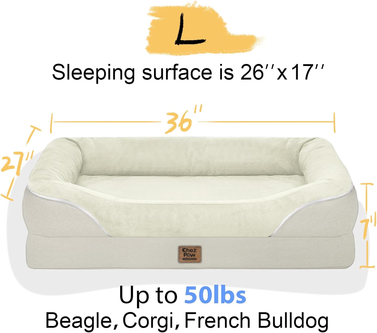 • Waterproof and Easy to Clean: This large sized dog bed is coated with waterproof inner lining that effectively protect the mattress from any unexpected spills; The cover features dual zippers for easy removal, toss the cover into the washing machine for a thorough clean, making cleaning a breeze