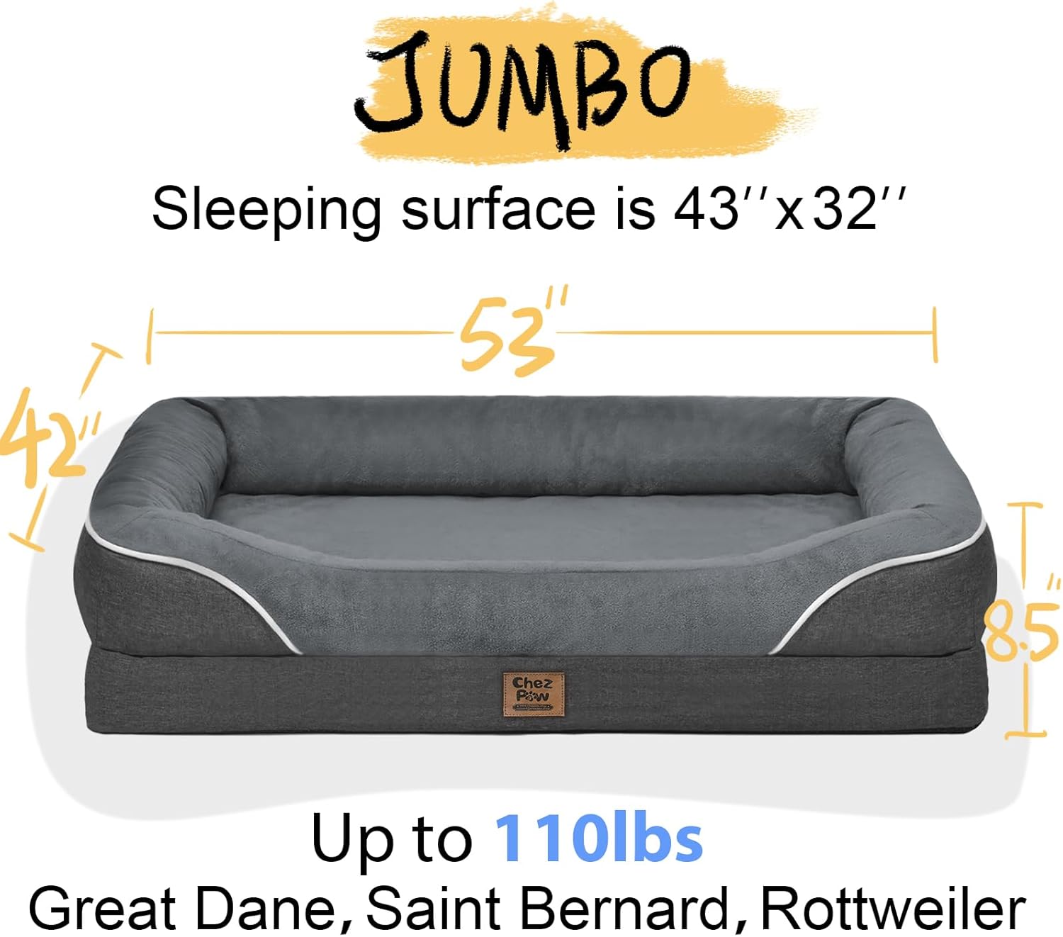 • Waterproof and Easy to Clean: This large sized dog bed is coated with waterproof inner lining that effectively protect the mattress from any unexpected spills; The cover features dual zippers for easy removal, toss the cover into the washing machine for a thorough clean, making cleaning a breeze