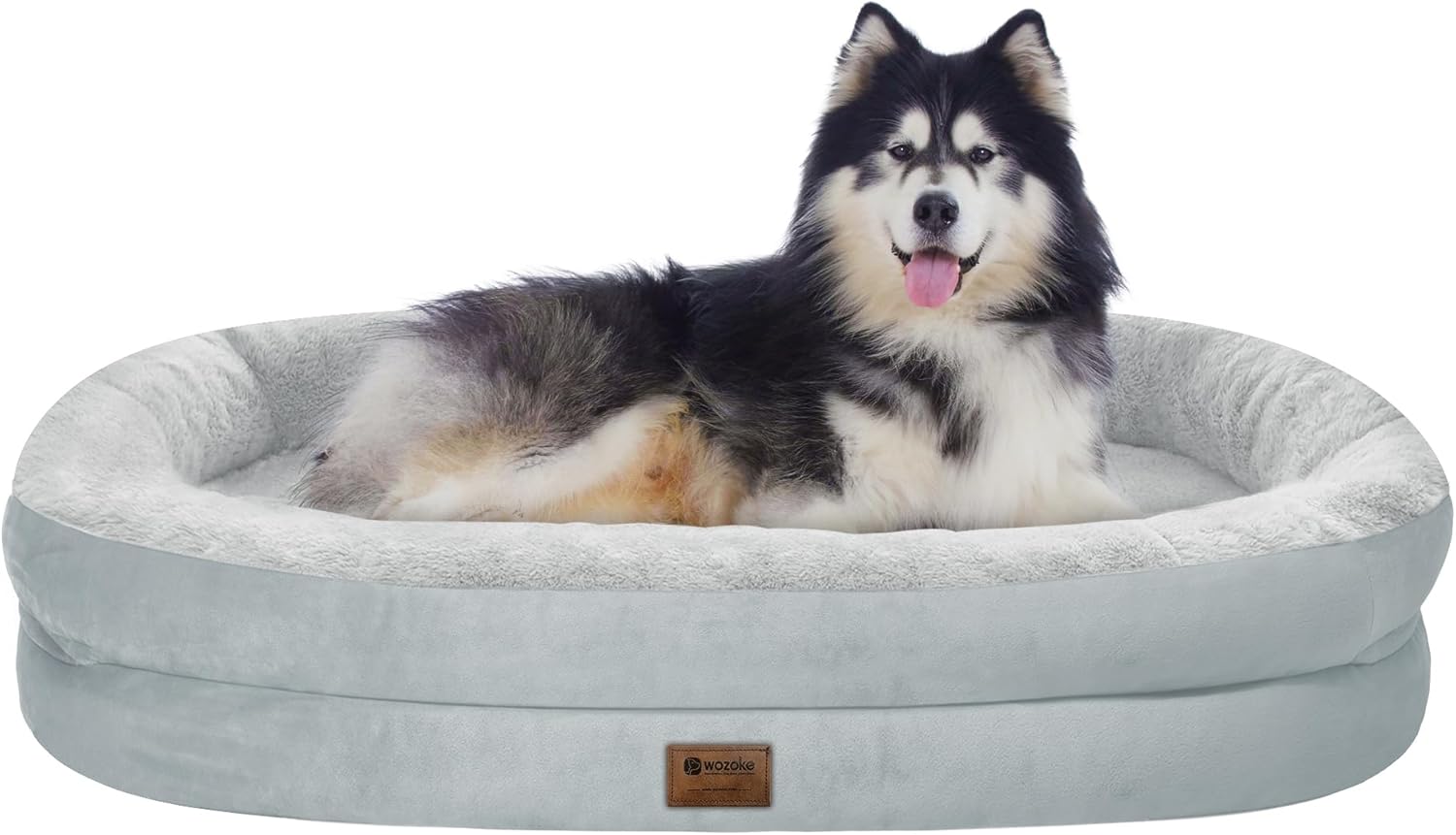 Orthopedic Waterproof Large Dog Bed: Memory Foam Washable Dog Bed with Bolsters - XXL Orthopedic Removable Cover for Medium Large Sized Pet - Non-Slip Bottom - Silver