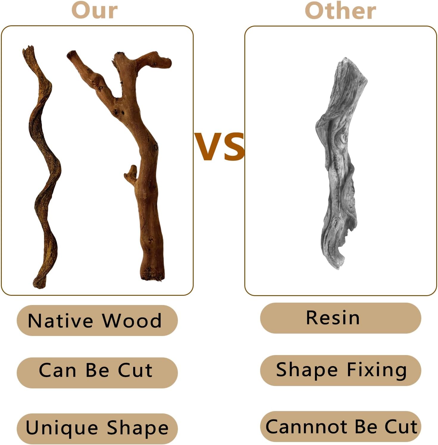 • 【Unique Reptile Branch Decoration】This reptile branch decoration is made from natural branches. These branches mostly grow in mountainous jungles, often winding around other large trees, resulting in each branch having a unique shape from various angles due to natural growth variations. Each branch has a distinct shape, making them one-of-a-kind.