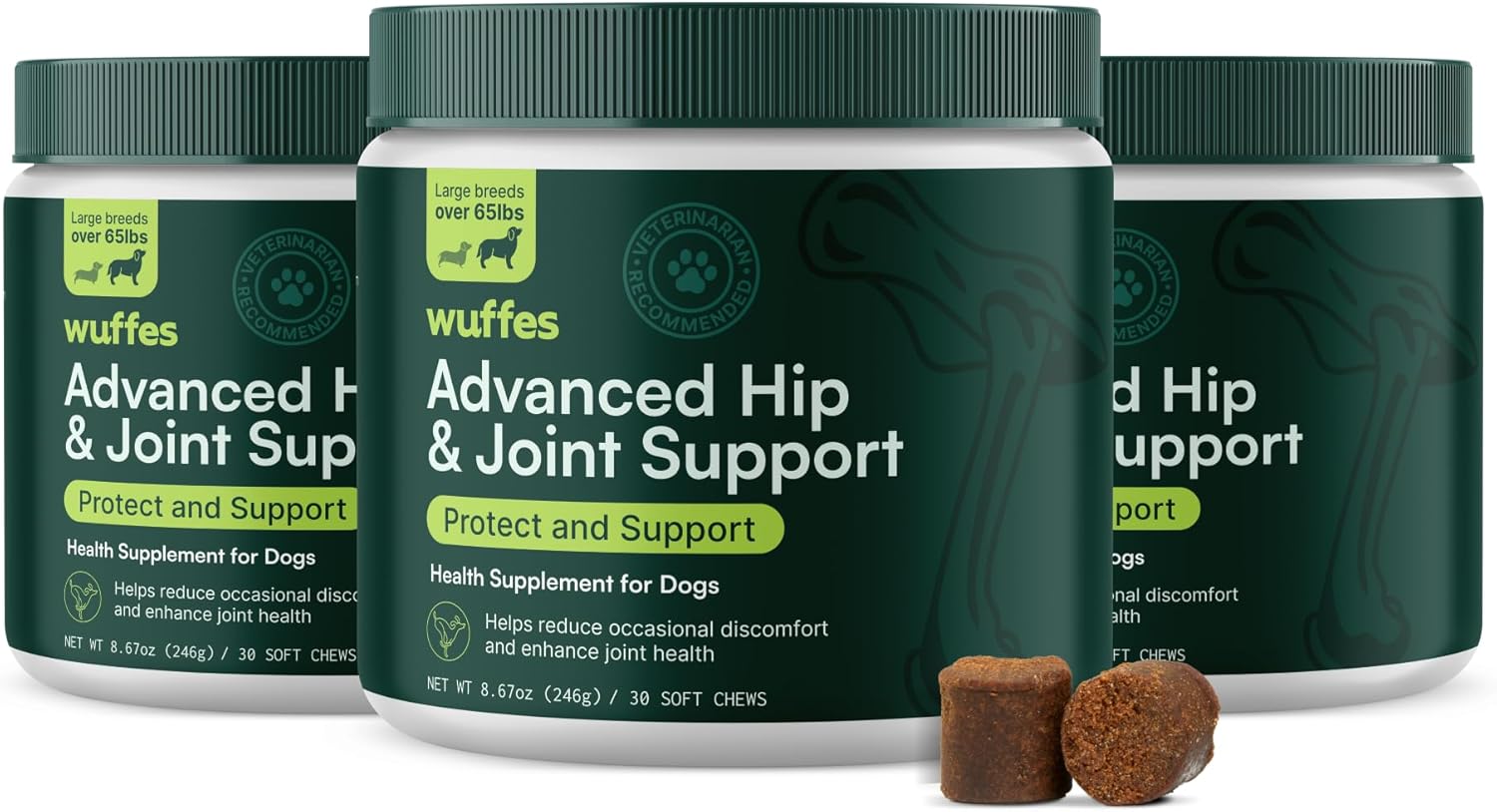 Wuffes Chewable Dog Hip & Joint Supplement - Glucosamine & Chondroitin Chews - Dog Joint Supplements & Vitamins - Extended Joint Care (Small&Medium Breeds (0-65 lbs), 180 Chews (Pack of 3))
