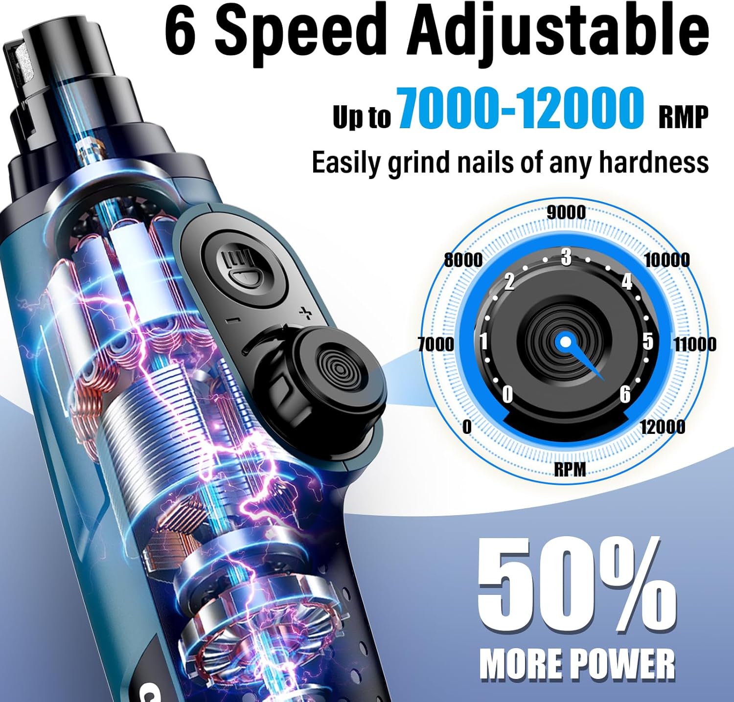 • 【Adjustable 6 Speeds for Perfect Precision】 With speeds from 7000 to 12000 RPM, the Casfuy electric dog nail file is one of the most powerful on the market. It offers 6 speed levels, each featuring 9 variable power settings. The smart optimization ensures that every speed delivers the ideal power for small, medium, and large pets’ nail care. Experience the perfect blend of power and precision.