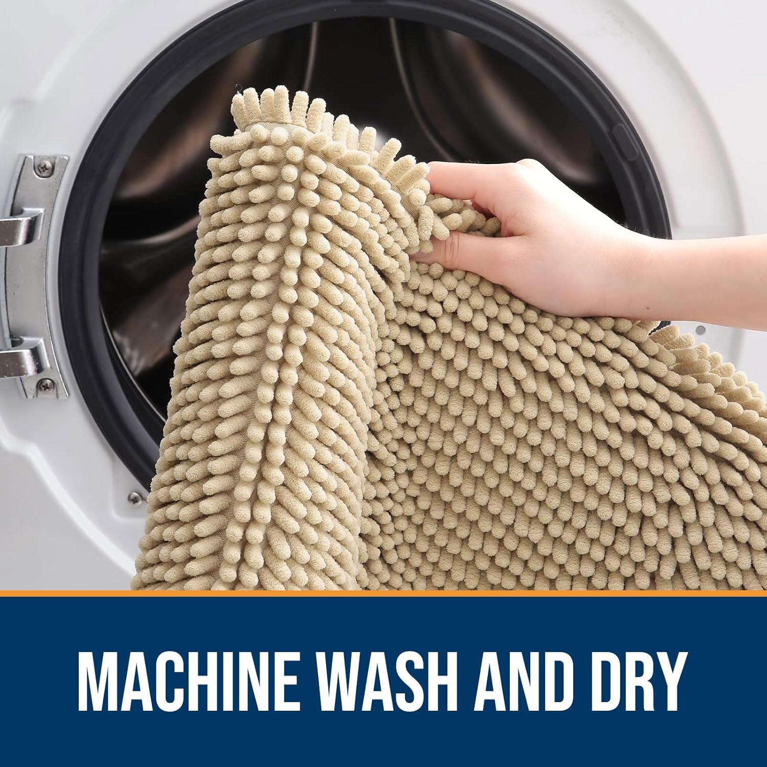 OLANLY Dog Door Mat for Muddy Paws 70x46, Absorbs Moisture and Dirt, Absorbent Non-Slip Washable Doormat, Quick Dry Chenille Mud Mat for Dogs, Entry Indoor Entryway Carpet for Inside Floor, Beige