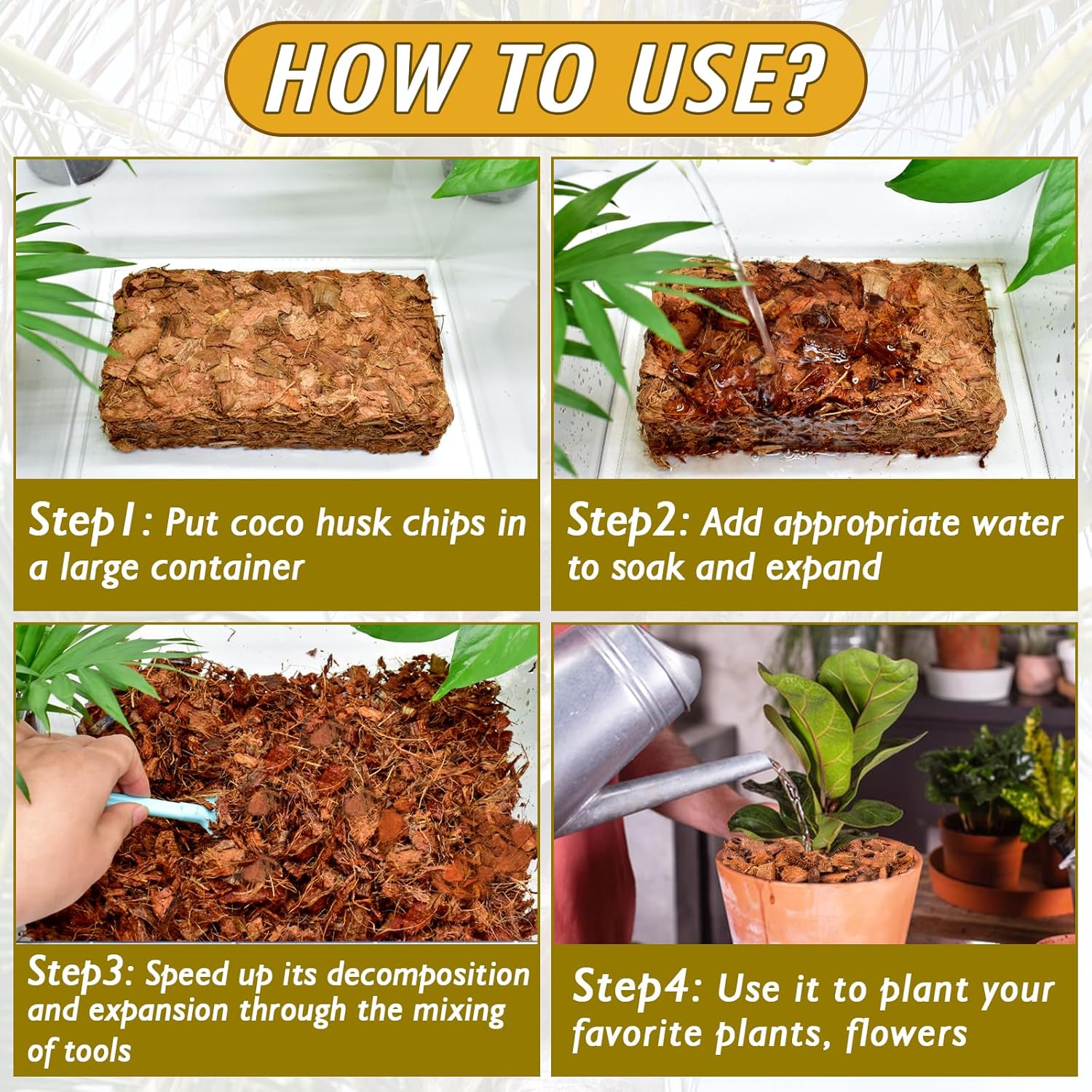 • ๐„๐š๐ฌ๐ฒ ๐ญ๐จ ๐”๐ฌ๐ž ๐š๐ง๐ ๐’๐ญ๐จ๐ซ๐ž: Our compressed coco bark is very easy to use and carry around. All you need to do is put them in a large container and soak them with the right amount of water to swell into loose coco chips to provide the best substrate for all types of plants