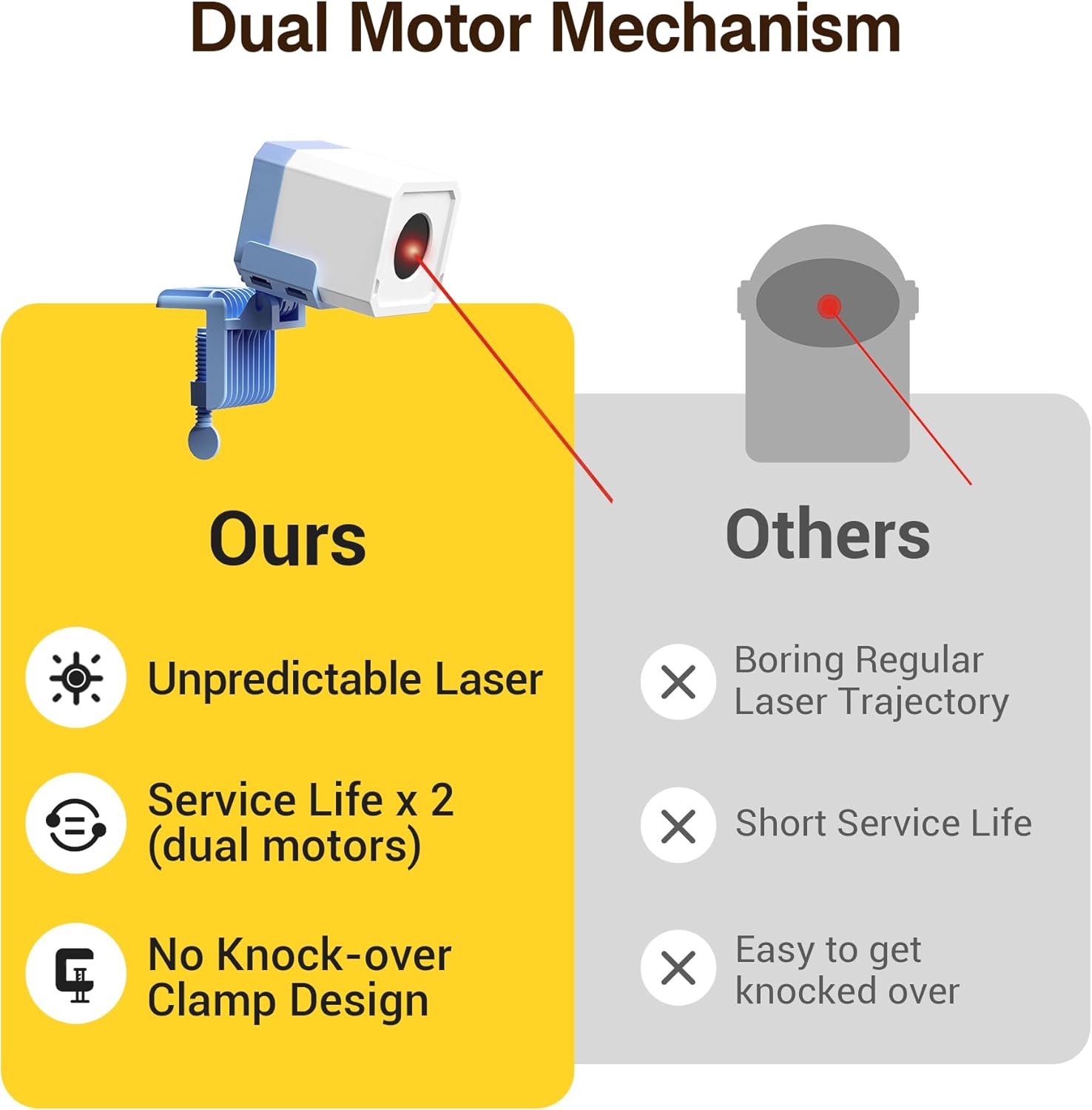 • True Randomness: Experience the game-changer in cat toys with truly random laser movements. No more predictable patterns; watch your cat or kitten get fully engaged in the hunt, thanks to the cutting-edge dual motor mechanism.