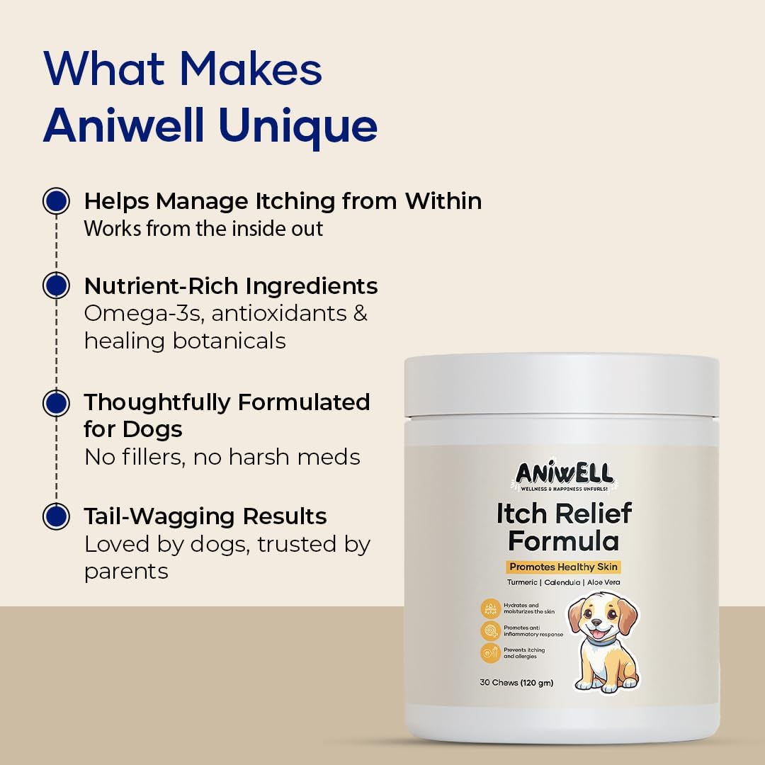 • Anchovy Oil: Contains omega-3 fatty acids, which help reduce inflammation and itching in dogs, promoting healthier skin and coat. Additionally, it supports overall skin health by nourishing and moisturizing the skin, providing relief from itching.