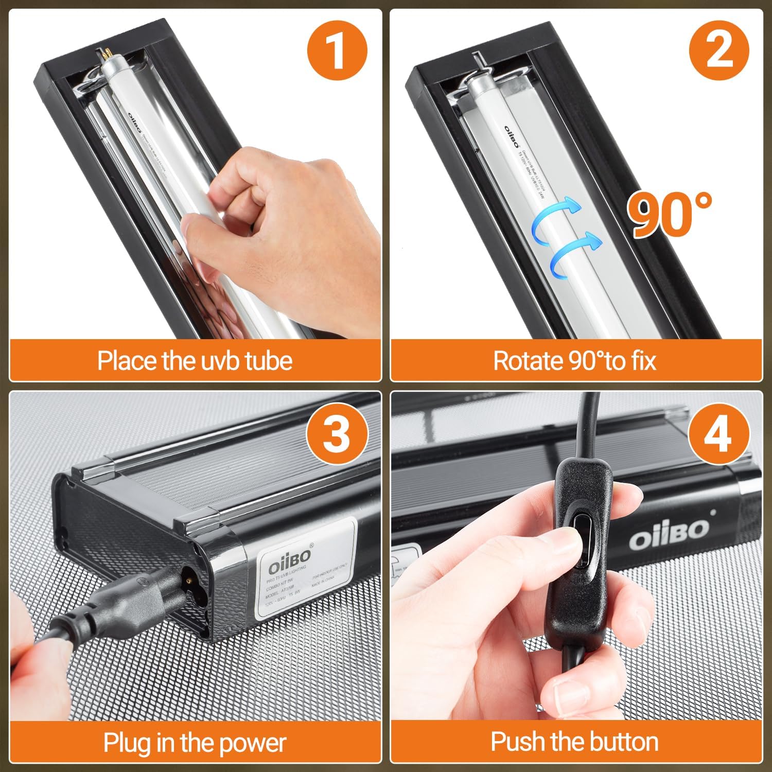 • 【Reptile Health】OiiBO 39-Watt T5 HO Terrarium Hood for Reptiles with 10.0 UVB UVA Lamp provides essential UVB and UVA rays that simulate the UVB spectrum of sunlight, aiding reptiles in synthesizing vitamin D3, promoting healthy bone development, enhancing immunity, and preventing diseases. UVA rays stimulate reptiles' appetite and help meet their daily needs.