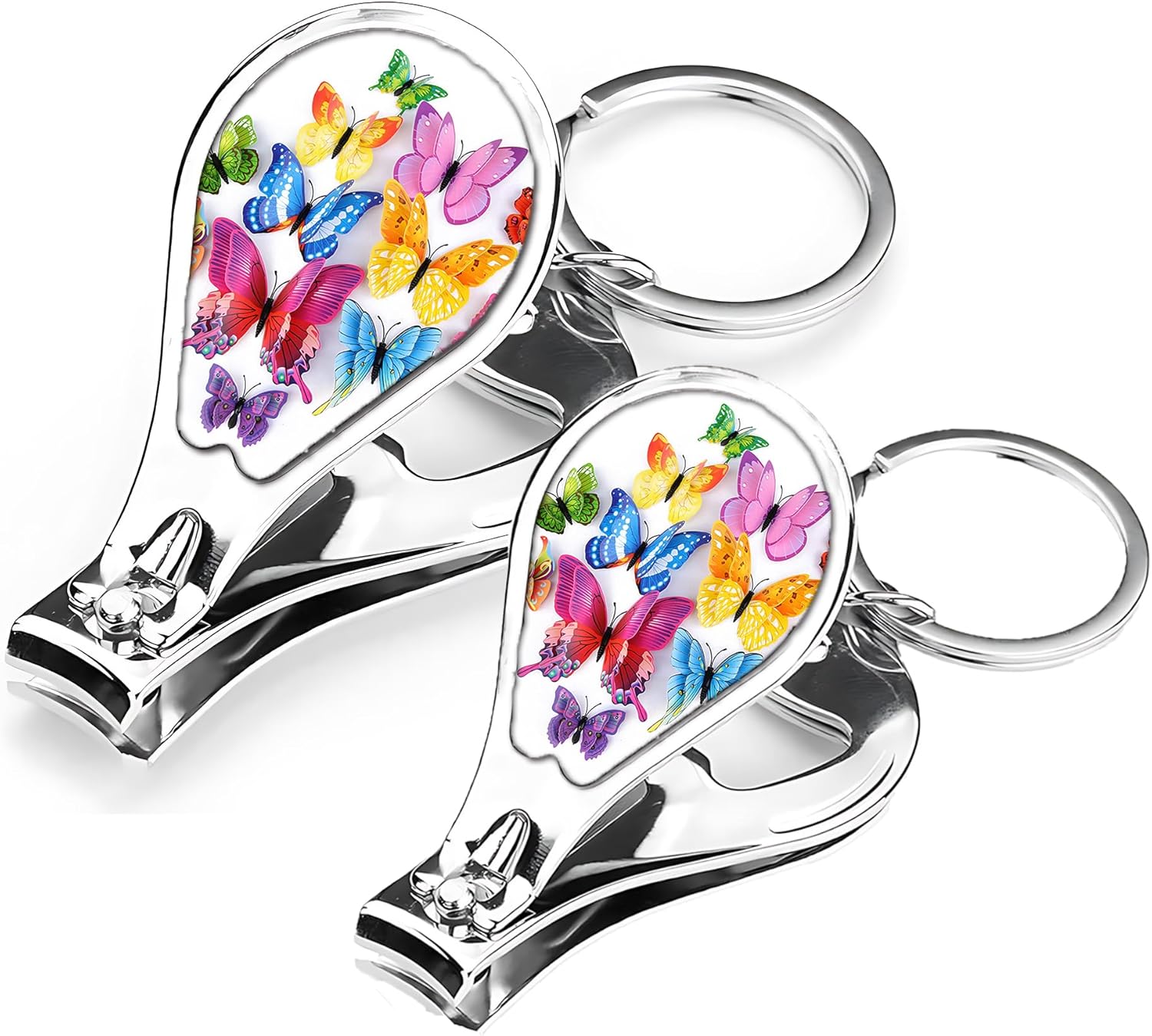 Nail Clippers with Key Chain Cute Stainless Steel Nail Cutter with File Professional Toenail Clipper for Men Multifunction Toenail Clipper 2 Pack Nique Cutter for Adult(Butterfly)