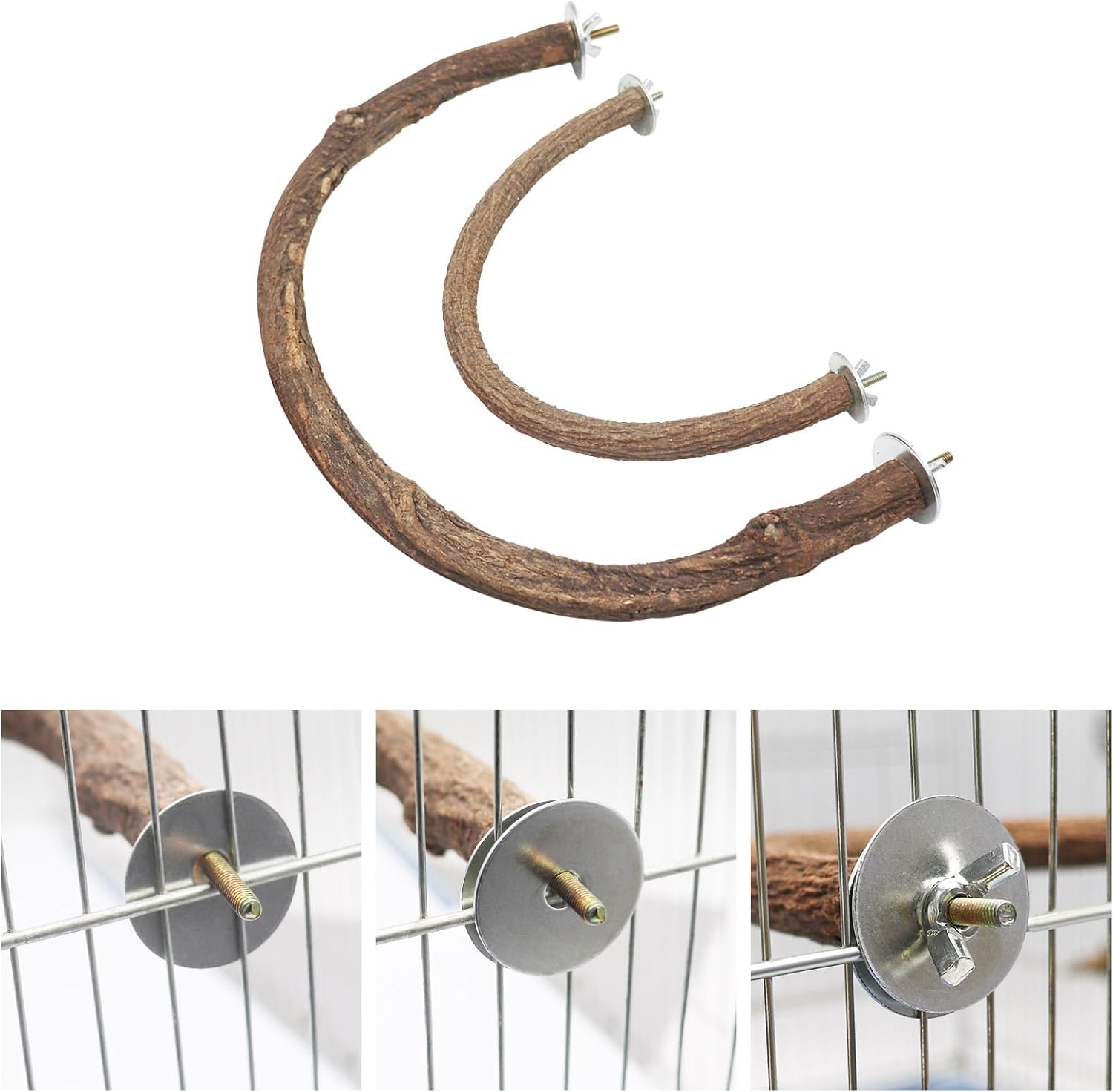 • Set of Two U-Shaped Bird Perches: This set includes two U-shaped natural wooden bird perches, with one large and one small size to accommodate different birdcage configurations. Each perch comes with screws and wing nuts on both ends, making them easy to install inside or outside bird cages of various sizes.
