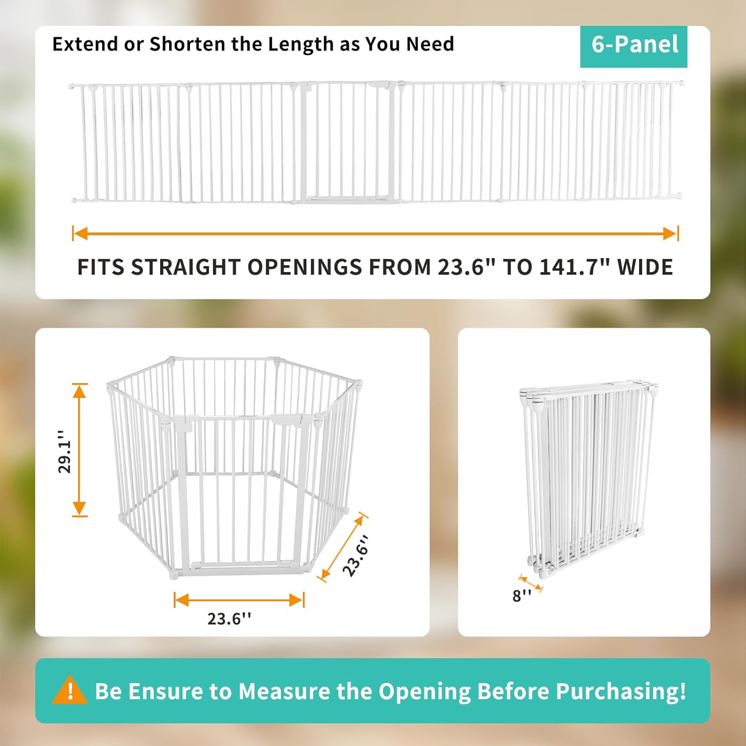 Extra Wide Baby Gate, 30" Tall 142" Wide Configurable Baby Gate Fireplace Safety Fence, Metal Pet Safety Playpen for Toddler/Pet/Dog Christmas Tree Fence (Whtie, (6-Panel))
