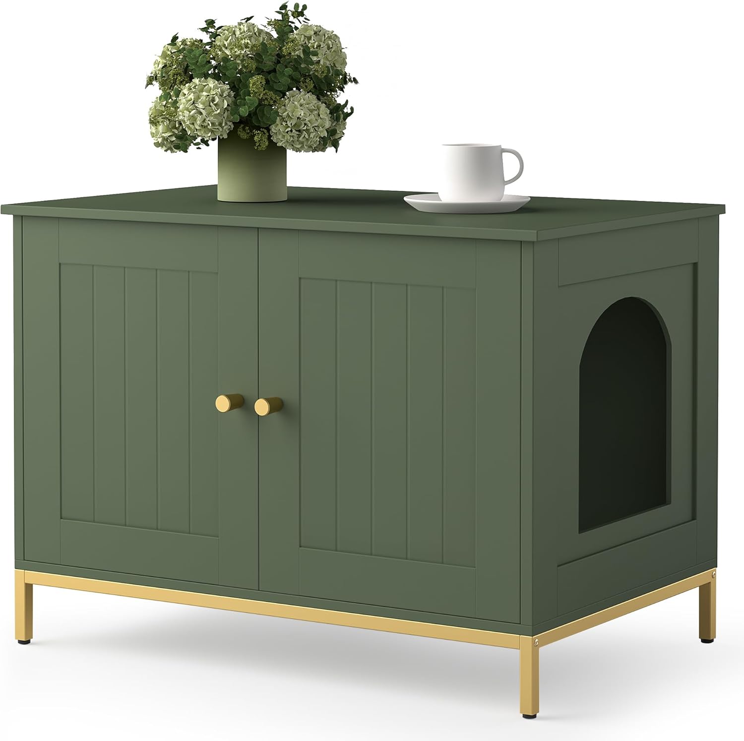 • Modern style: The cat litter box cabinet features white finish and metallic gold-colored metal frame, adding an elegant and stylish touch to your home decor. Its minimalist design and exquisite detailing inject a touch of luxury and sophistication into your living space.