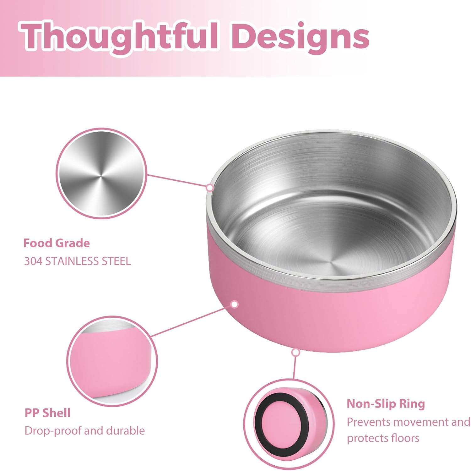 Stainless Steel Dog Bowls for Large Dogs - Insulated, Non Slip, Easy Clean, 40oz, Pink