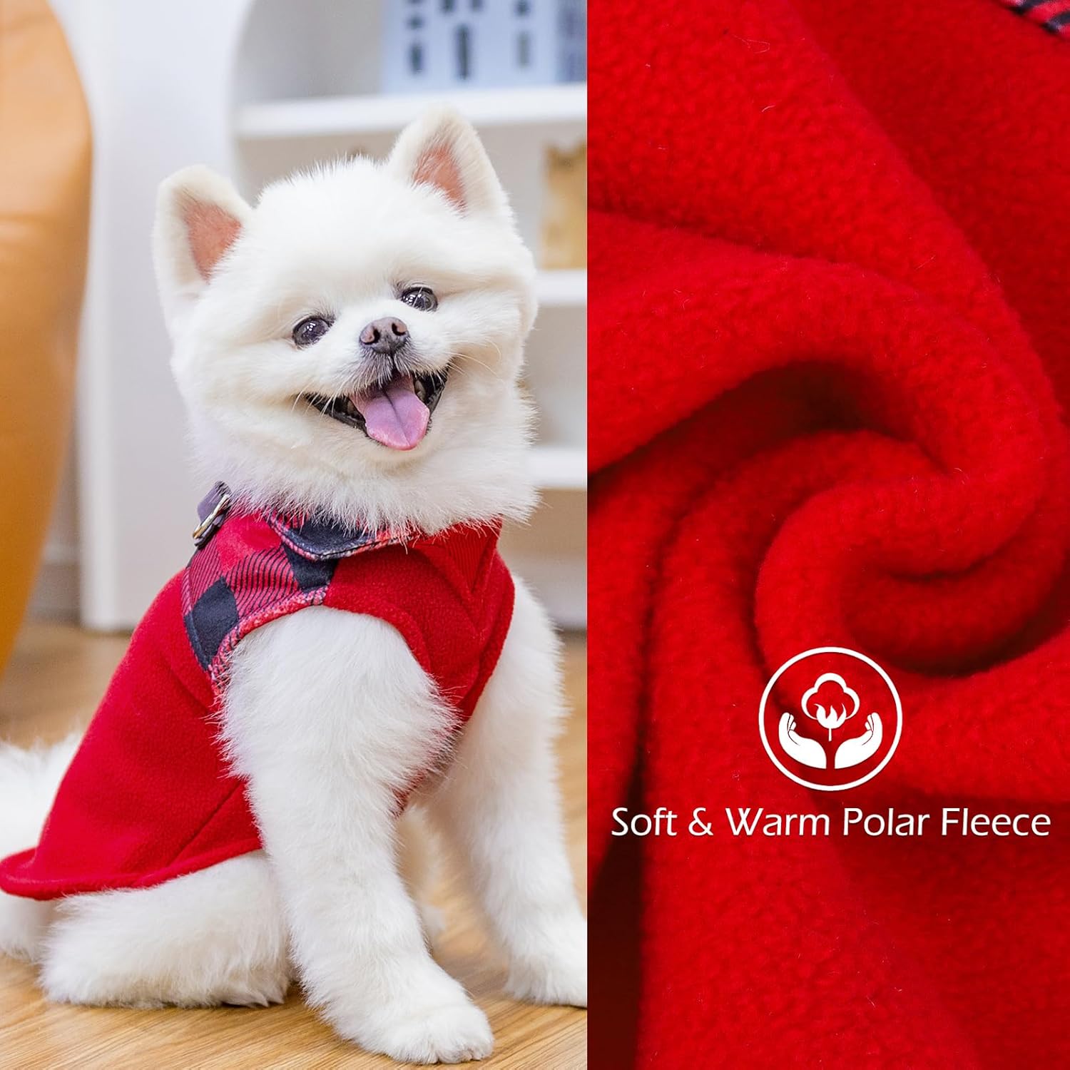 EXPAWLORER Fleece Dog Sweater for Small Medium Dogs - Classic Plaid Jacket, Doggie Winter Coat Vest with 2 D-Rings for Leash, Cold Weather Clothes,Pet Apparel,Sweatershirt for Boy or Girls
