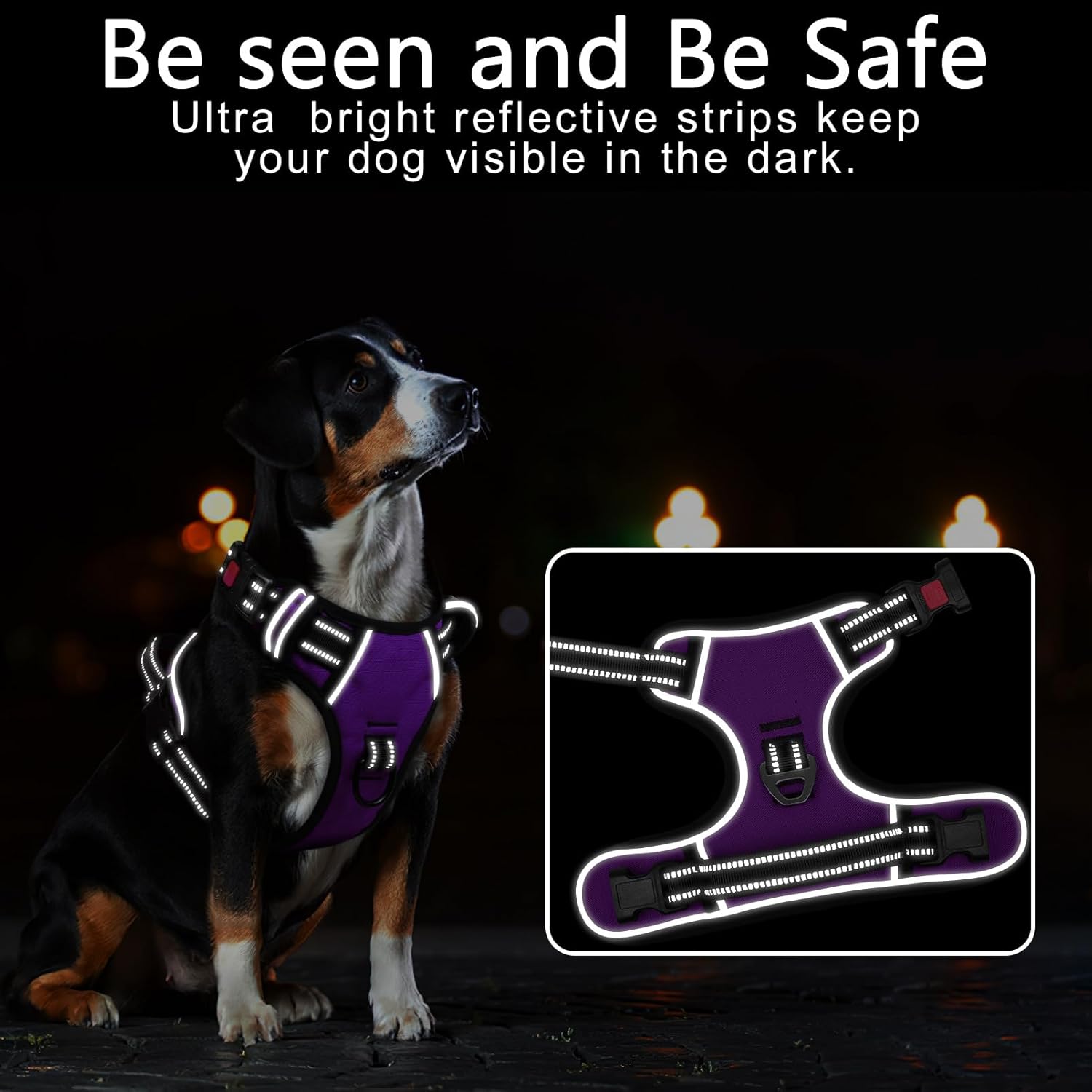 Timos Dog Harness Large Sized, No Pull with Neck Lockable Snap,No Choke Front Clip Dog Reflective Harness,Adjustable Metal Rings 3 Buckles,Easy Control Handle for Large Dogs Purple XL