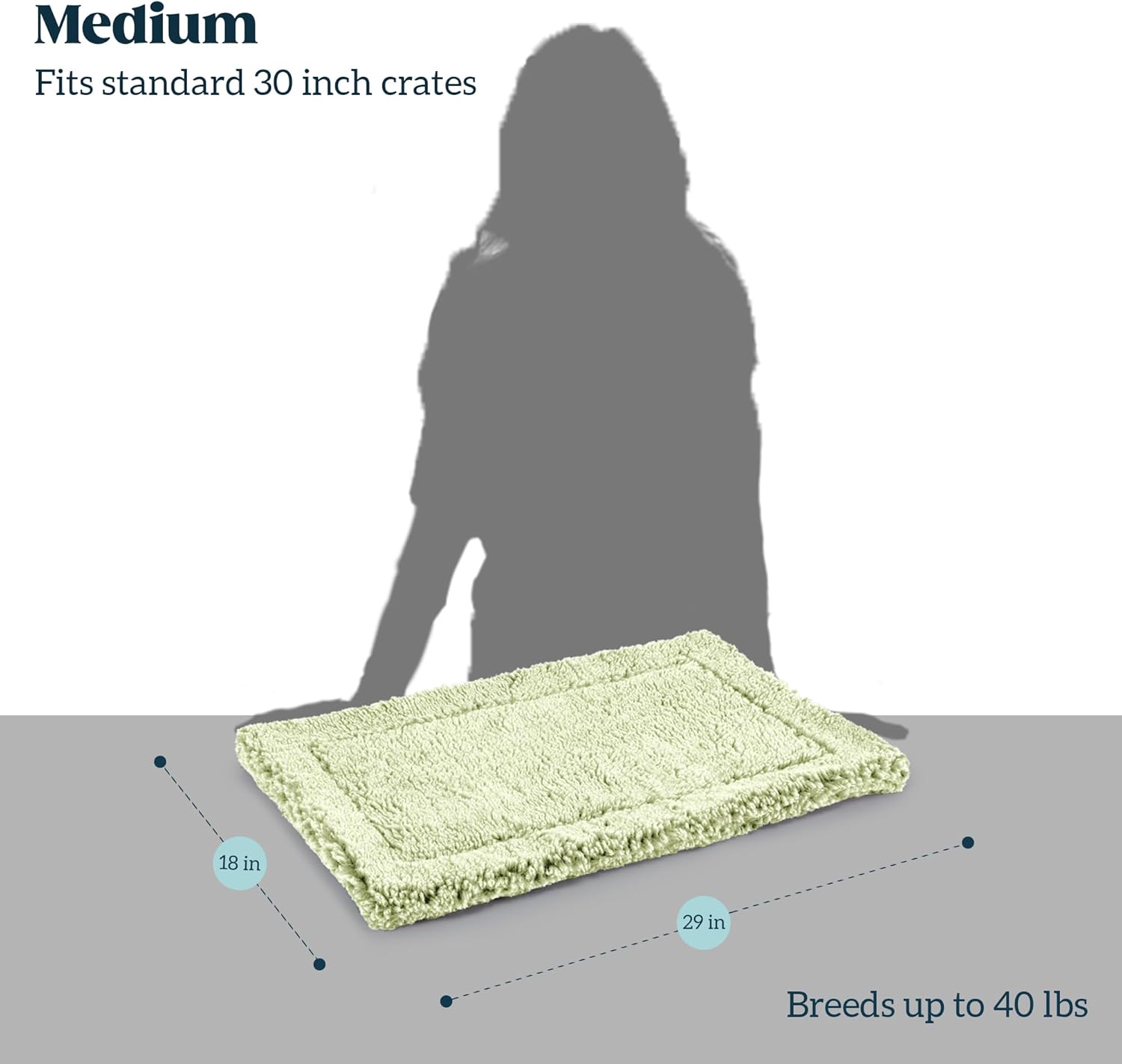 Stoutwool Indestructible Dog Bed - Fluffy Chew Proof Dog Crate Pad - Tough Kennel Pad for Aggressive Chewers - Washable, Ideal for Medium Breeds & Fits 30-Inch Crate - 29"x18", Gleam