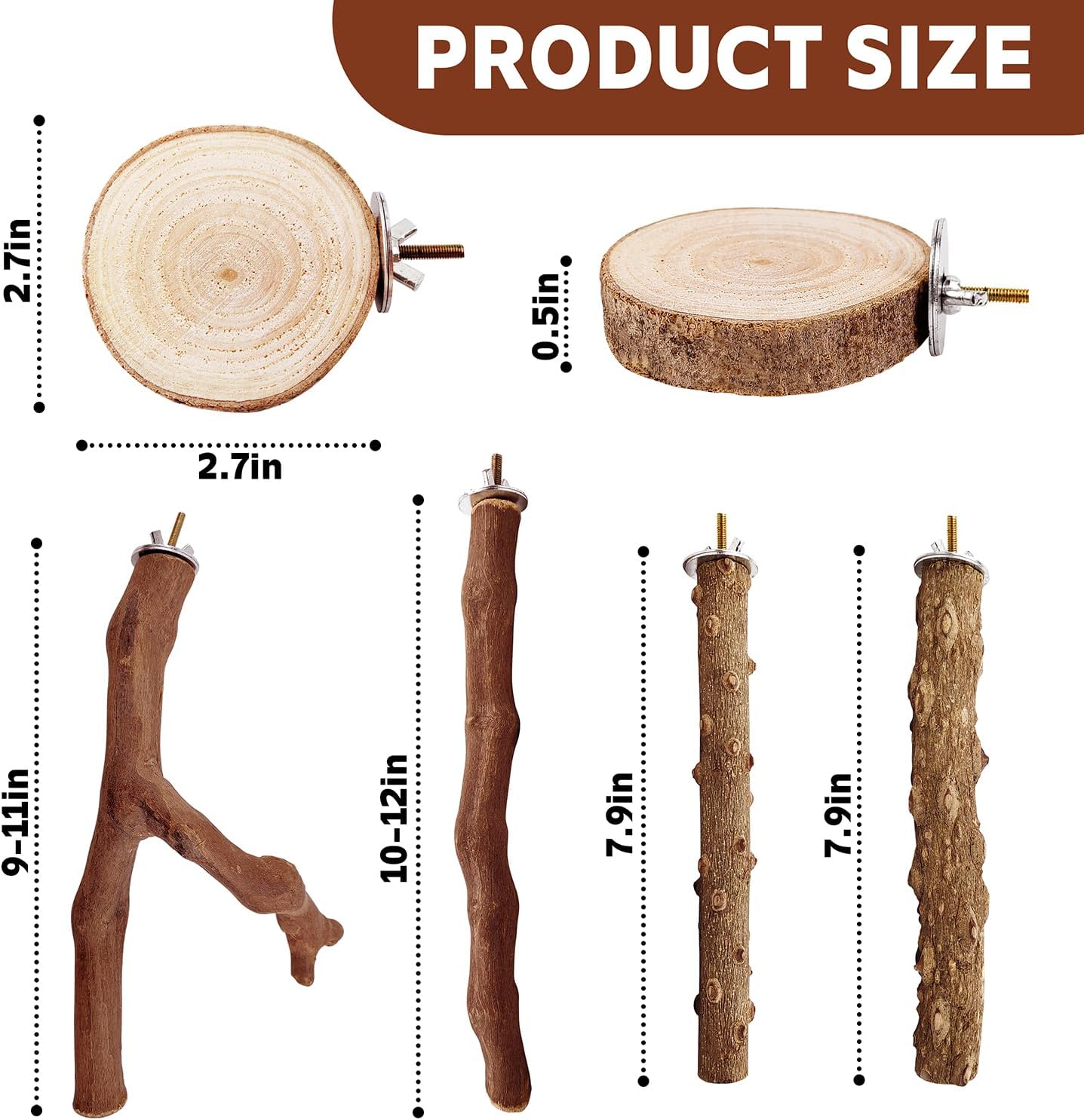 • [Different types of parrot perches]:- Create a natural habitat for your feathered friends with 3 grape stick paw grinding fork perches, 2 parakeet perches and 2 round platform.