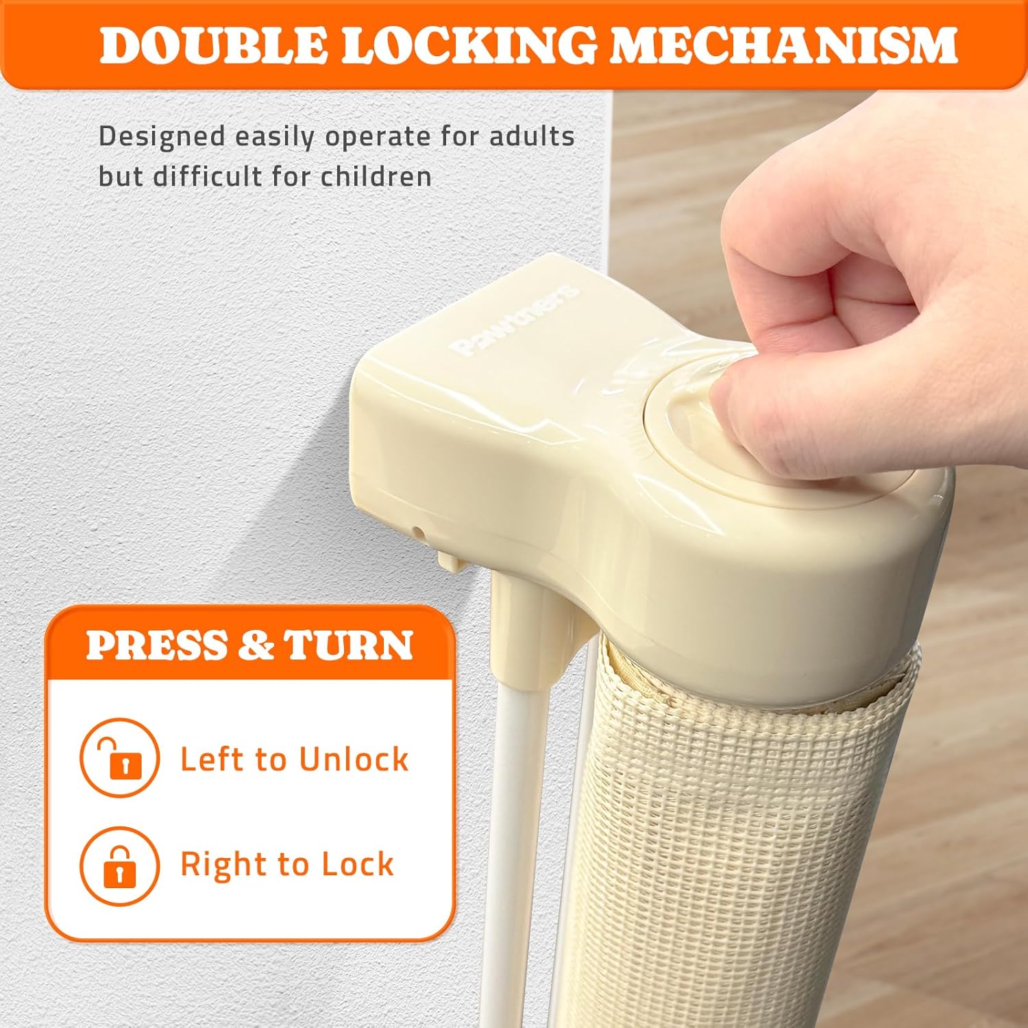 • Stable and Reliable: The Pawtners pet gate indoors comes with three high-quality rods to support the mesh baby gate, preventing it from toppling over. These rods also protect the gate's mesh from tearing and keep little ones from crawling underneath