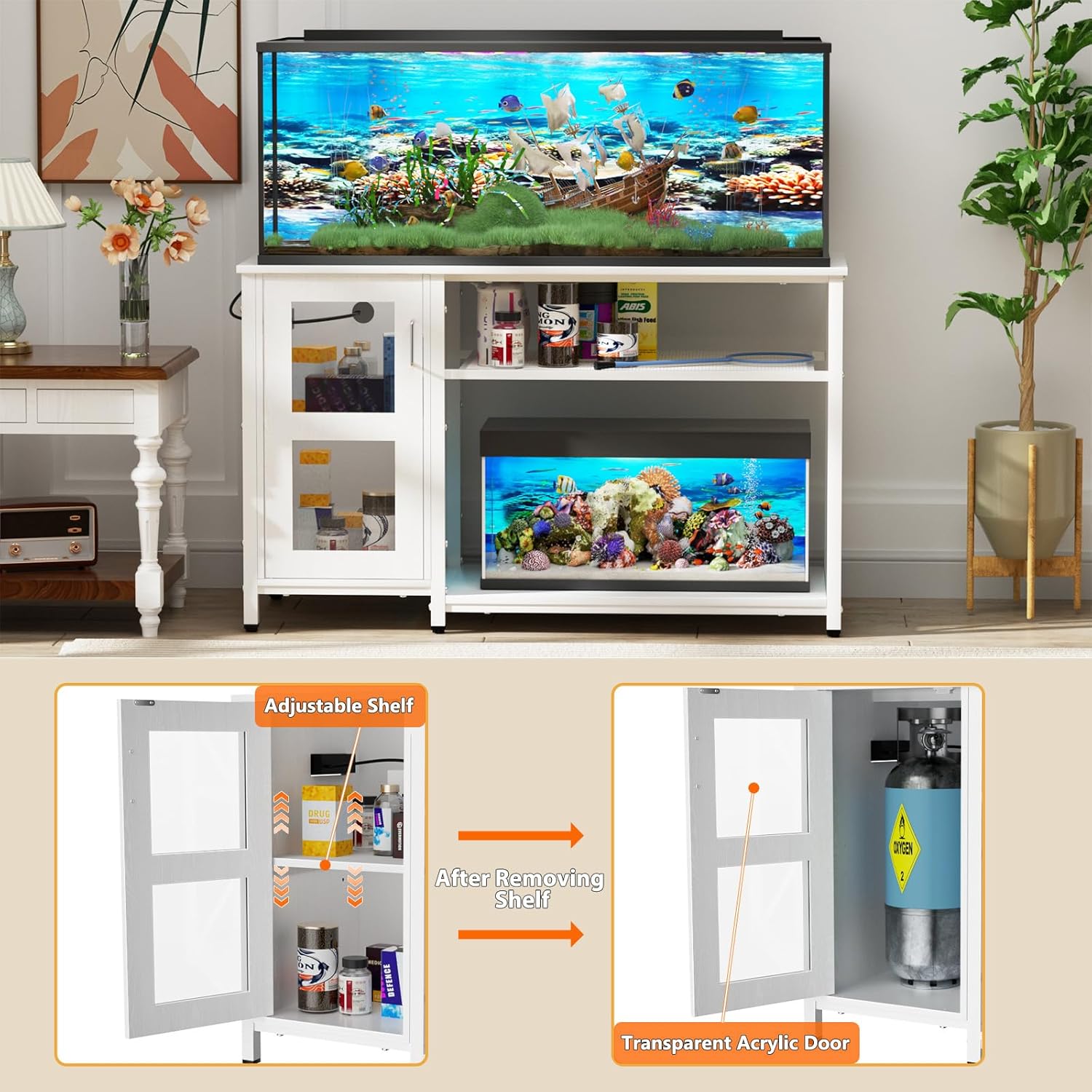 • Convenient Storage: This large fish tank stand easily keeps everything organized. First-level compartment on the right side stores fish food, nets, cleaning tools, and other accessories. The storage cabinet with doors has an adjustable design, removing the compartment allows for accommodating canister filters and CO2 hoses