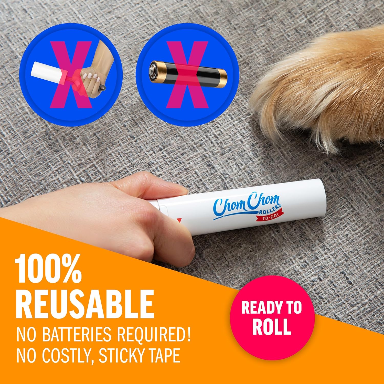 • TAME PET HAIR Our Chom Chom pet hair remover works wonders on even the fluffiest of furballs from cats, dogs, and all pets in between