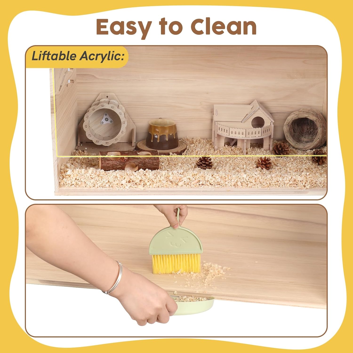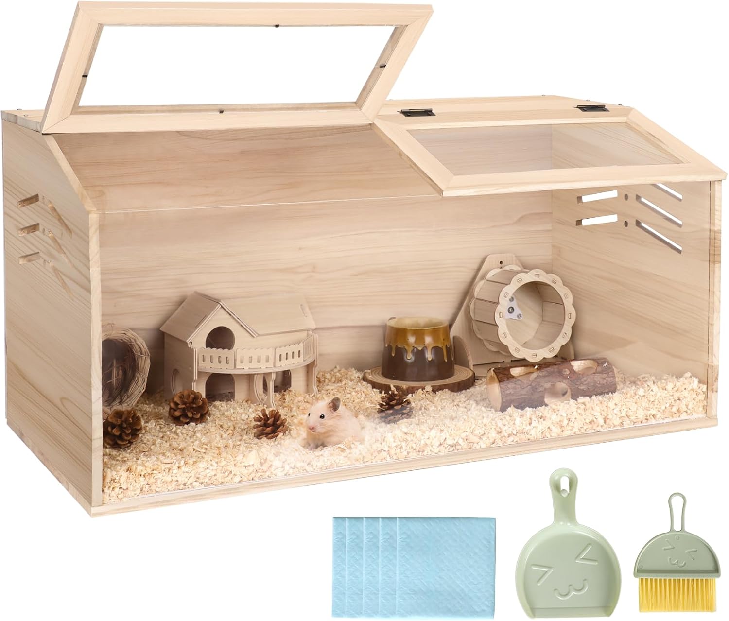 • Durable & Chewproof Material --- Constructed with high-quality, chewproof wood, this hamster cage is designed to withstand the relentless gnawing of small pets. Its sturdy construction not only enhances durability but also ensures a safe habitat, giving pet owners peace of mind that their furry friends are secure and protected.