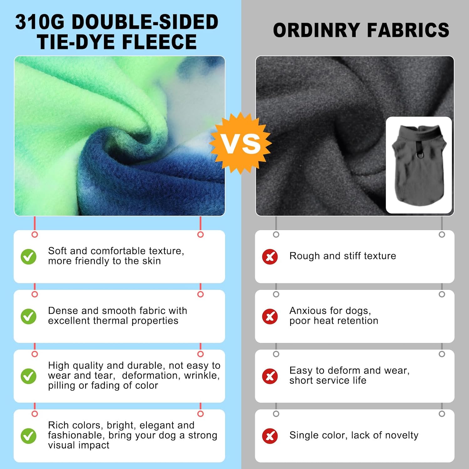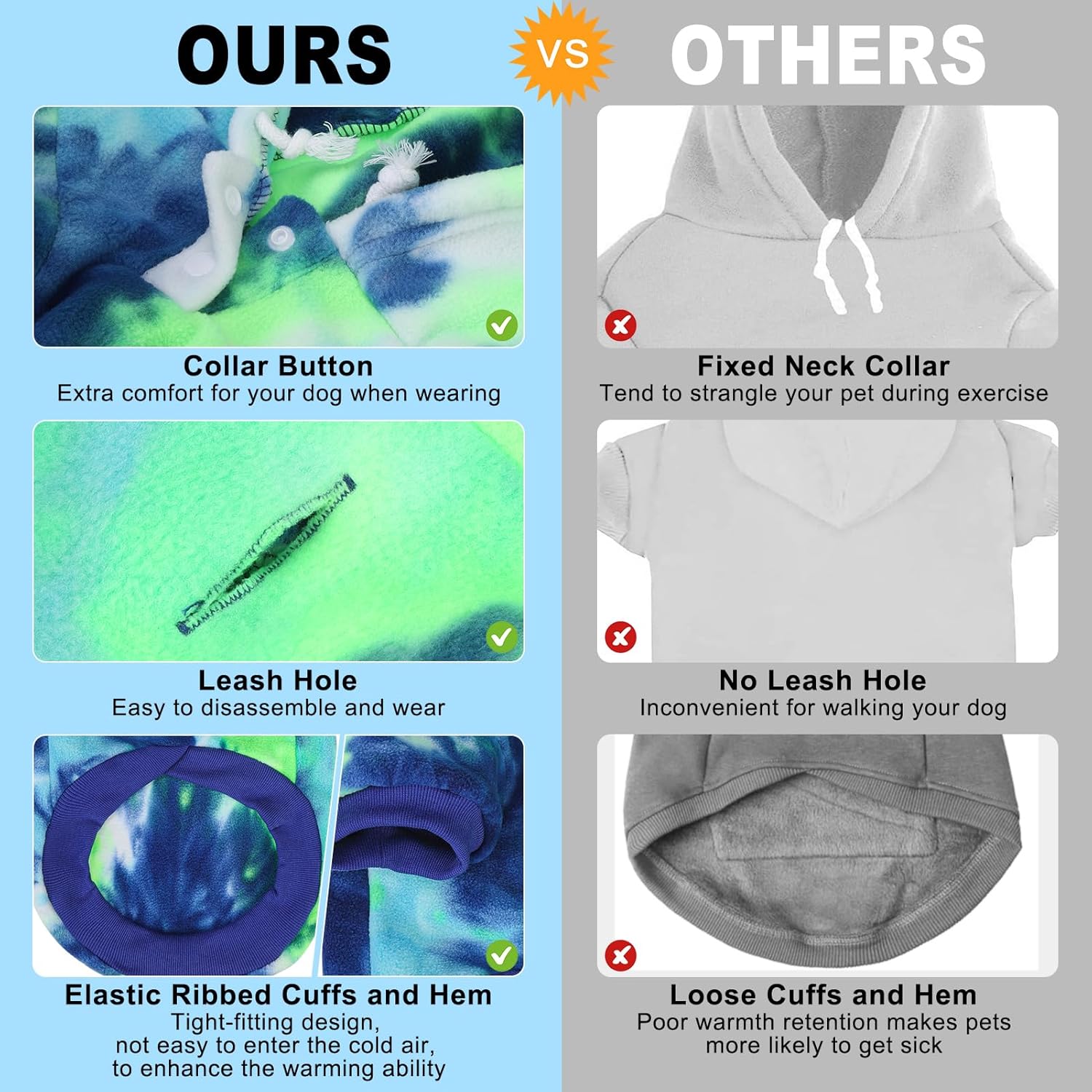 • Easy On Dog Clothes: Pull-on design with stretchy neck and leg openings makes dressing effortless. Soft V-neck buttons prevent fur snags, while the lightweight construction won't overwhelm sensitive dogs. Each dog hoodie features vibrant, fade-resistant tie-dye patterns for standout style. Perfect for holiday photos or daily walks, these dog clothes maintain color through repeated washing and wear