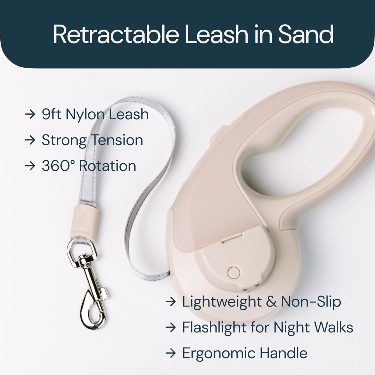 MalsiPree Walking Set with Retractable Dog Leash, Poop Bag Holder, Leak Proof 12 Oz Dog Water Bottle, Flashlight & 20 Poop Bags - 9.8ft Leash Retractable for Small to Medium Pet (Sand & Teal, 12 Oz)