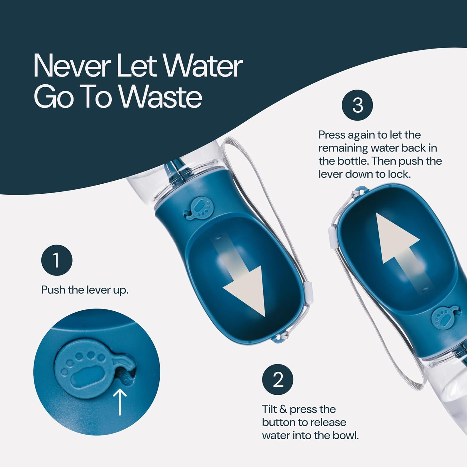 • Hydrate Anywhere: The dog travel water bottle is perfect for keeping your pup hydrated on the go. With a leakproof and filtered design, plus an easy locking system, this 2-in-1 dog water bottle and bowl combo makes sure your dog gets their water wherever the adventure takes you