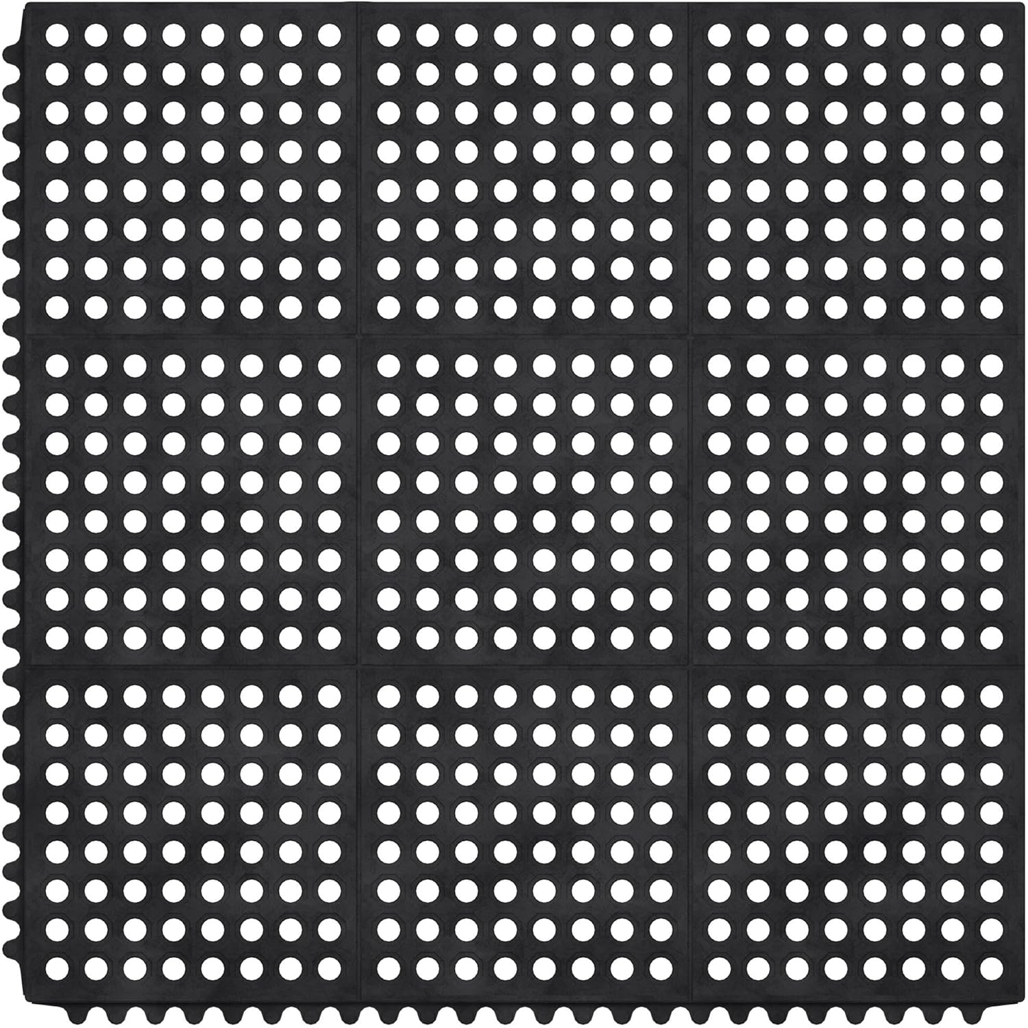 Ottomanson Heavy Duty Rubber Floor Mat – Non-Slip, Waterproof, Easy to Clean – Anti-Fatigue Mat for Commercial Kitchens, Restaurants, Workshops – Oil Resistant, Hose Washable – 36" x 36", Black