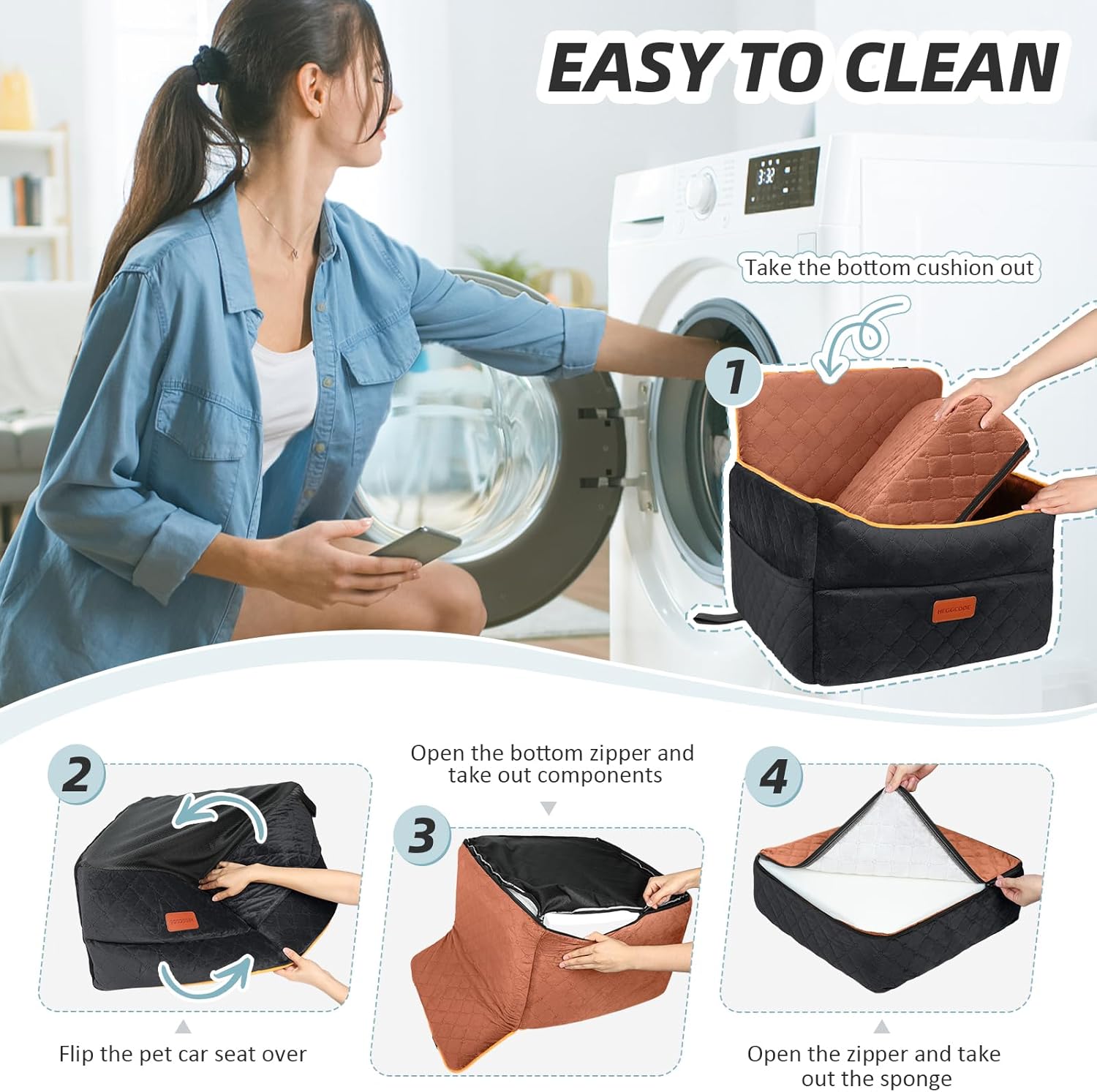 • Multi-functional Use: The small dog car seat is not only suitable for vehicles, but can also be used as a dog bed at home, outdoors or in a tent, providing your dog with a comfortable resting space anwhere. It has a removable and washable cover, simply open the zipper and take out the sponge to clean the cover. Please note that the inner sponge is not washable