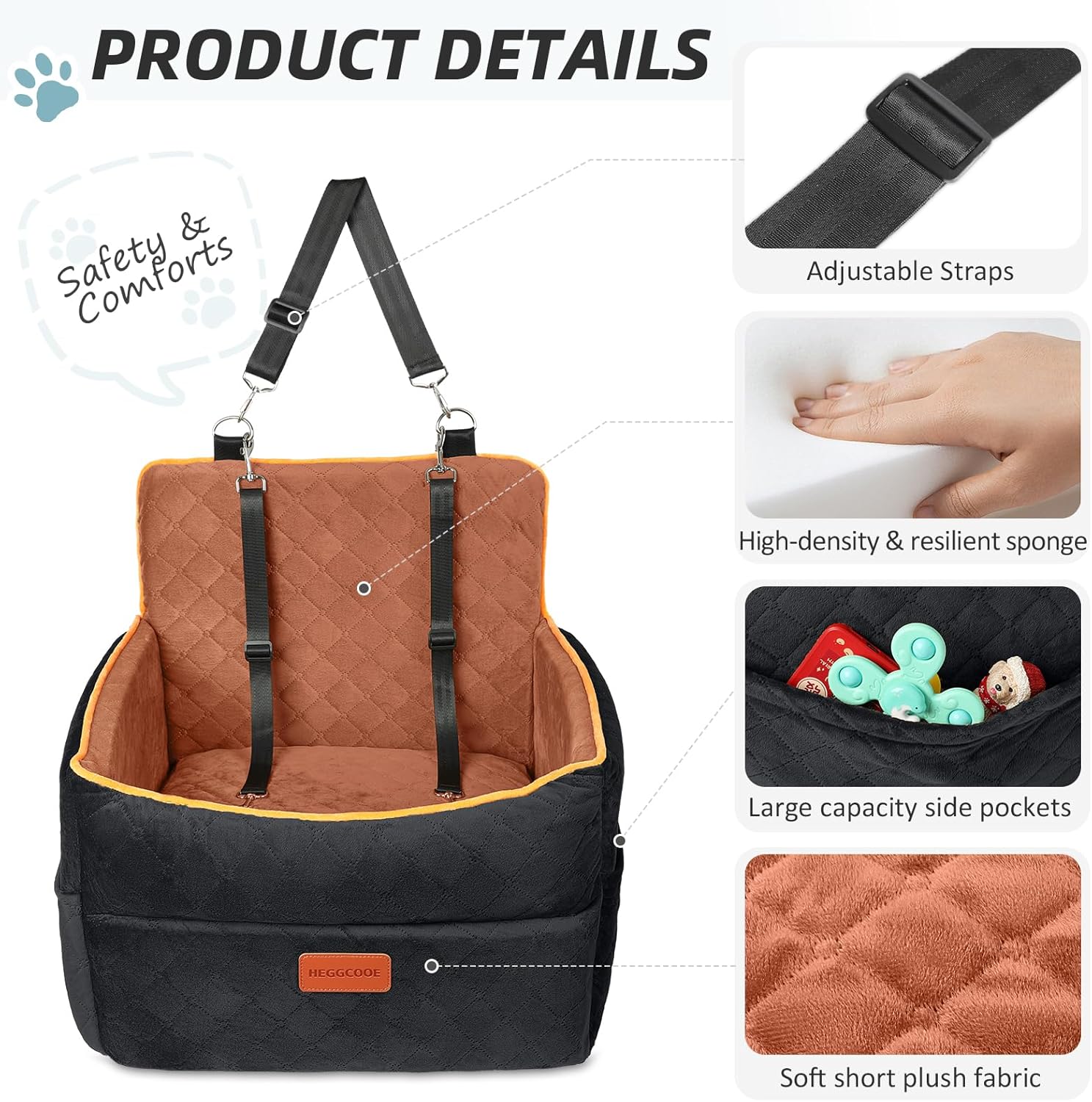 • Comfort and Safety : The surface of dog booster car seat is made of short plush fabric, super soft and comfortable, and the bottom is filled with high-density egg-shaped foam to provide superior comfort and support, effectively reducing the impact of road bumps,together with the non-slip bottom and headrest straps, the dog car bed will be more stable to ensure your dog's safety