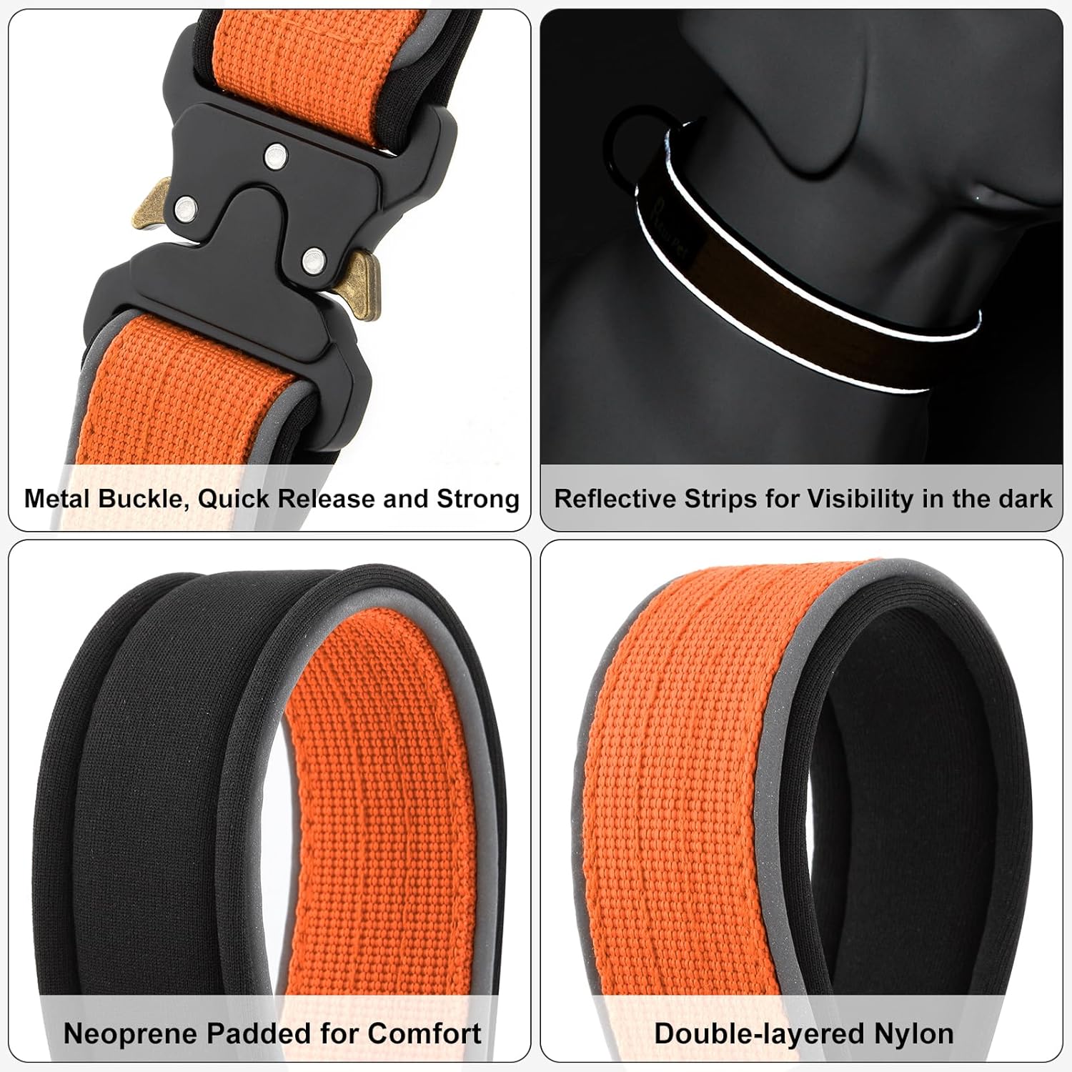 Plutus Pet Tactical Dog Collar, Reflective, Adjustable Heavy Duty Dog Collar, Soft Padded and Comfortable, for Small Medium and Large Dogs (Orange, L)
