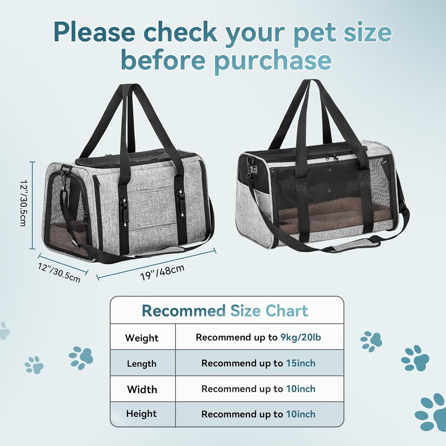 • Stable Structure & Durable Materials: Petsfit pet carrier is made from stainless steel and 6mm fiber rods for stability. This dog carriers for small dogs is made of durable Oxford fabric, improved scratch-resistant mesh, precise stitching and high-quality metal accessories, which enhance its durability and make it an ideal choice for long trips with pets