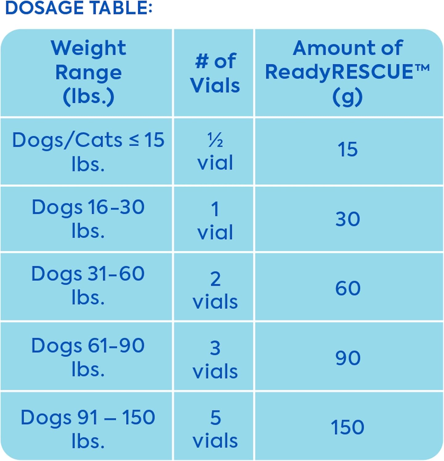 • EASY EMERGENCY SOLUTION: Worried about your curious puppy eating something dangerous? ReadyRESCUE is a breeze to use! Mix it with pet food, water, or a tasty treat like peanut butter. Quick, easy, and stress-free detox for you when every second counts! This single use vial is recommended for pets 30 lbs and under.