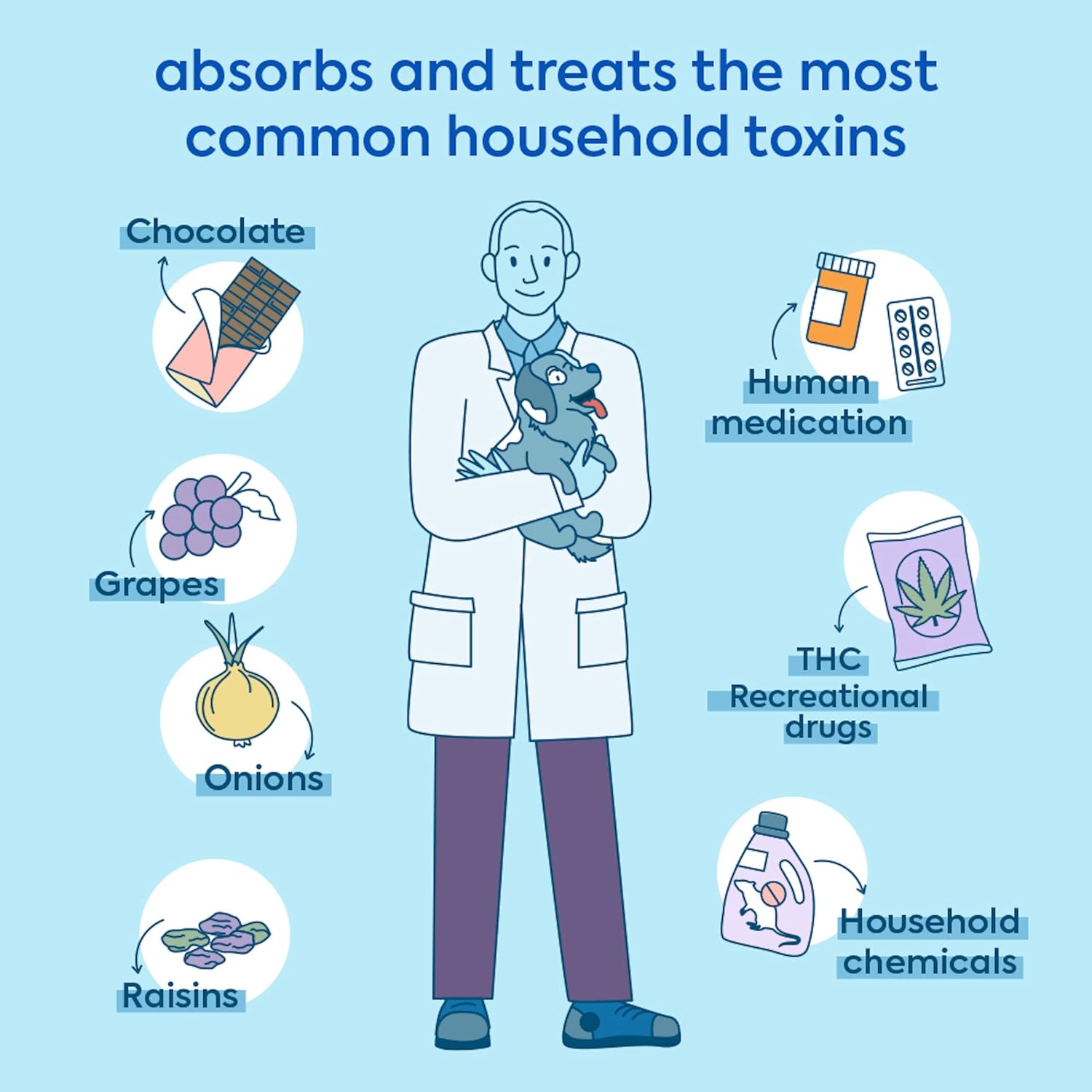 • HELPS RELIEVE DISCOMFORT: Instantly neutralizes a wide range of toxins like chocolate, grapes, THC, and houseplants. Say goodbye to your pet's discomfort and hello to a happy, healthy tummy. Perfect for use alongside other dog diarrhea medicines.
