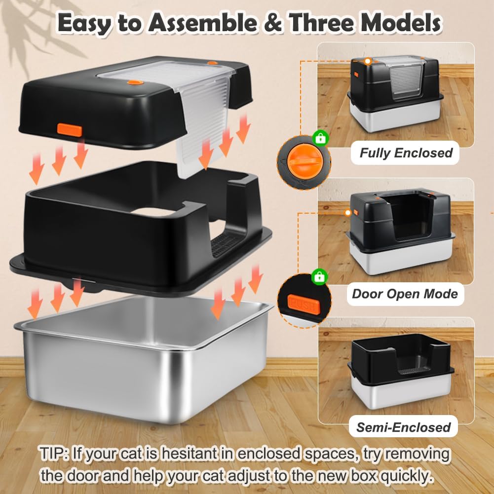 • EASY-TO-CLEAN DESIGN - The smooth stainless steel surface makes it simple to rinse and wipe down. Its modular design allows you to lift the metal litter pan quickly for cleaning, without having to move other parts. The removable folding door further simplifies daily cleaning, making litter maintenance a breeze