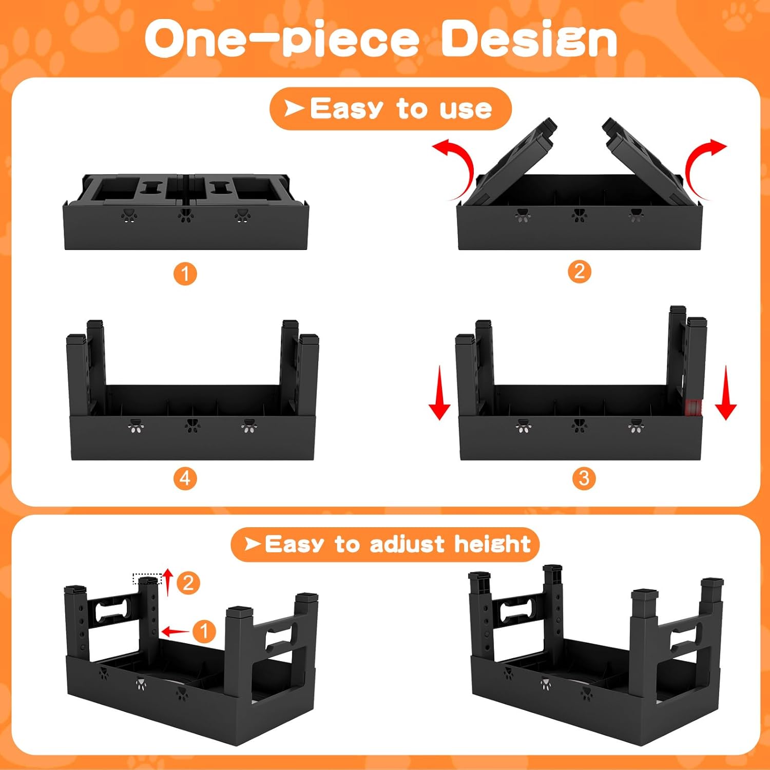 - ๐พใHigh Quality & Sturdyใ:Crafted with high-quality ABS plastic for long-lasting durability, this dog feeding station resists damage from daily use and energetic pets. It includes 2 premium stainless steel bowlsโthick, heavy-duty, and detachable for easy dishwasher cleaningโThe size of the bowls is 7.8 inches inner diameter, to reliably meet your petโs daily food and water needs while ensuring a safe, non-toxic dining experience.