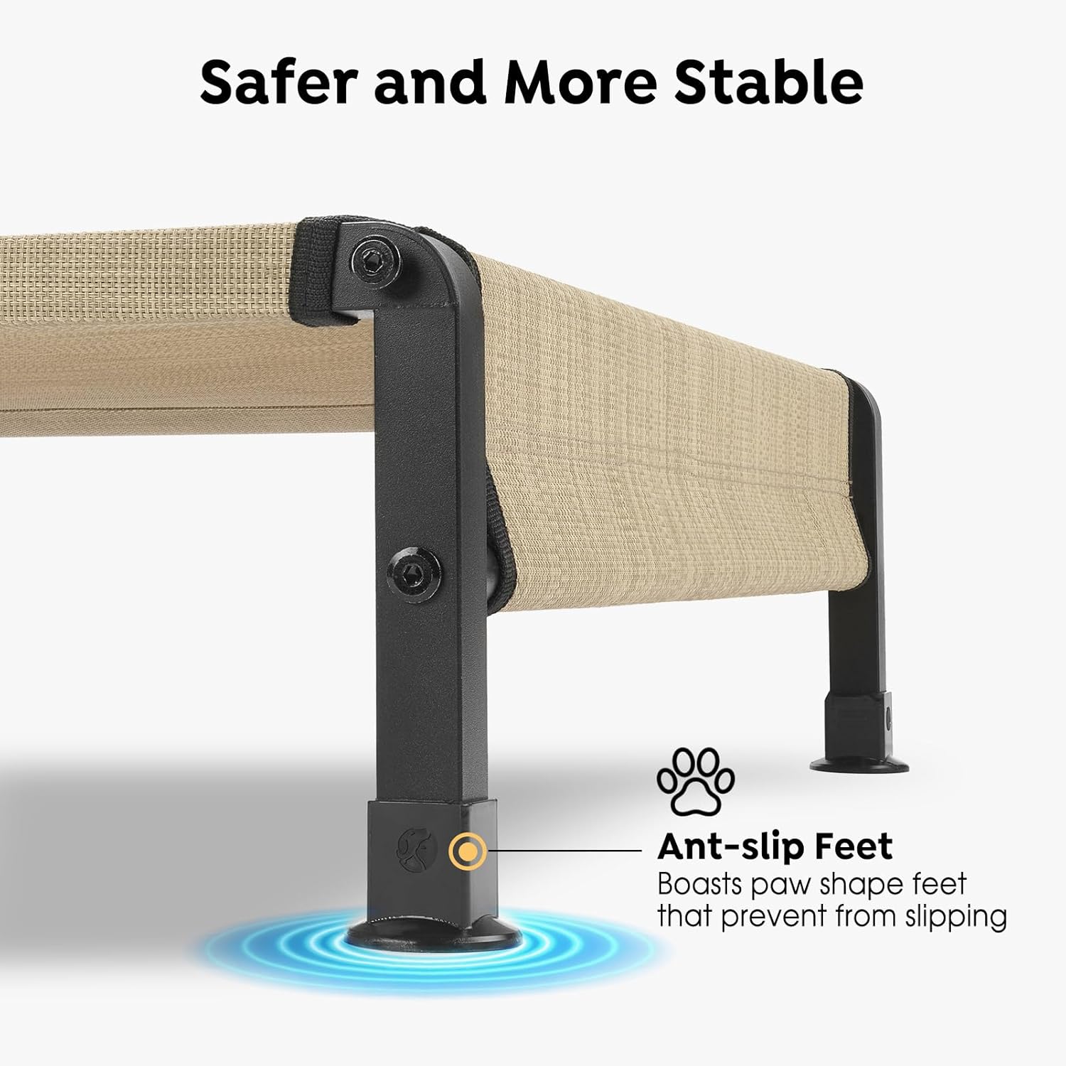 • Enhanced Durability: One Piece Tubing Sturdy Design resists bending, and the heavy-duty frame is thicker than other normal beds, ensuring lasting durability. With anti-slidding silicon feet, this elevated pet bed offers superior stability, making it a safe and reliable choice for even the most active pets.