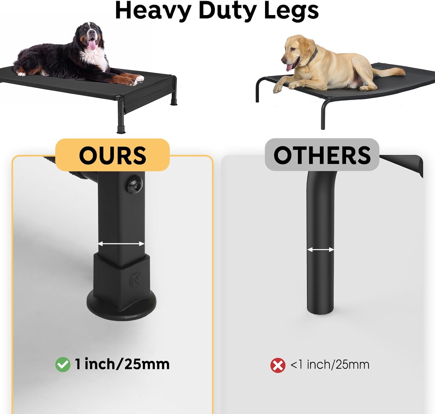 • Enhanced Durability: One Piece Tubing Sturdy Design resists bending, and the heavy-duty frame is thicker than other normal beds, ensuring lasting durability. With anti-slidding silicon feet, this elevated pet bed offers superior stability, making it a safe and reliable choice for even the most active pets.