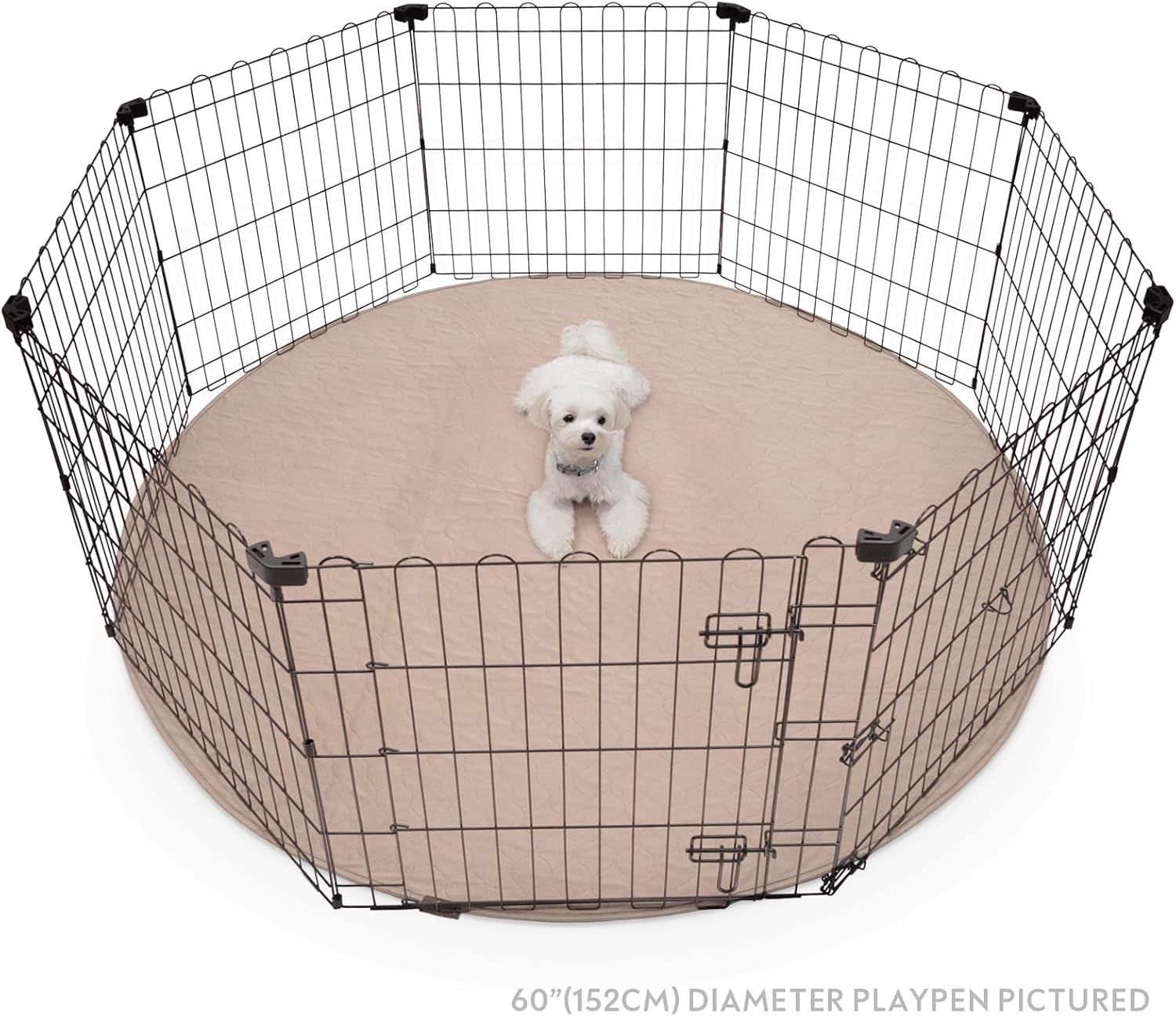 • MANY USES: The round shape makes these puppy pads perfect for playpens! You can also use them as housetraining pads for puppies, in whelping pens, as incontinence pads, or simply for lining your floor, carpet, rug, bed, couch, or other furniture. Use as a food or water bowl placemat or as a sofa or chair cover to protect your house from accidents like urine or liquid spills and other messes.