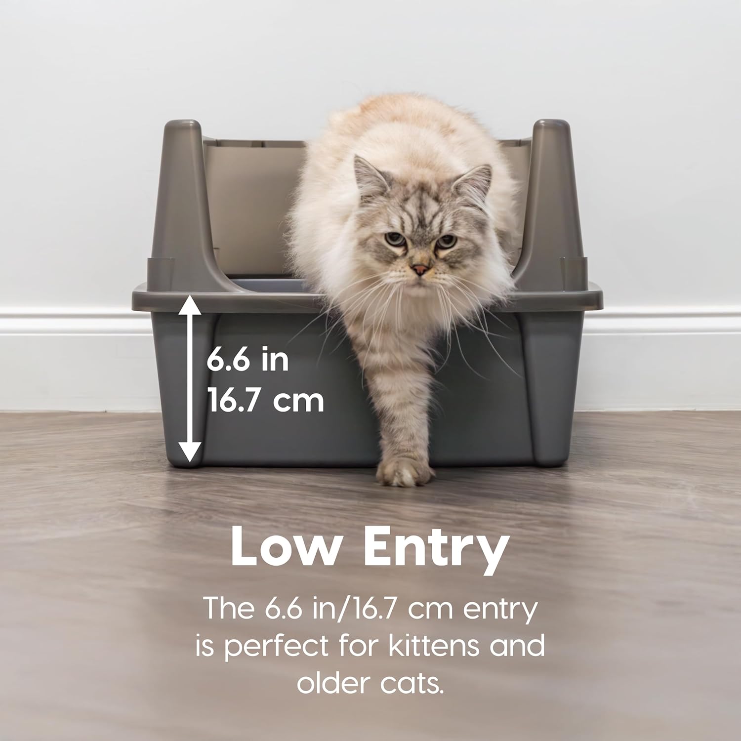 • OPEN TOP: The open-top design encourages airflow and makes it easy to monitor your cat’s litter habits. It’s ideal for cats who dislike covered boxes and lets you know exactly when it’s time to scoop, helping maintain a fresher, cleaner space.