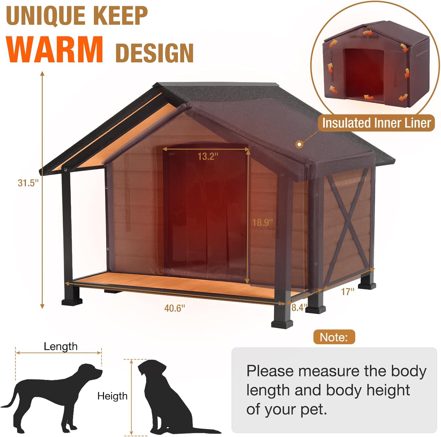 • 【Super Large Dog House】Oversize: 40.6"(L)×34.3"(W)×31.5"(H), Provides super large space for small, medium, large, and extra-large dogs.