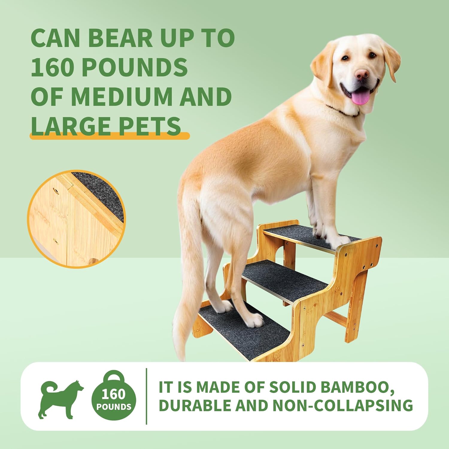 Dog Stairs for Small Dogs,3-Step Bamboo Wooden Dog/Pet/Cat Steps Ramp for Couch Sofa,Bed and Car, Can Support Weighing Up to 160 LB,