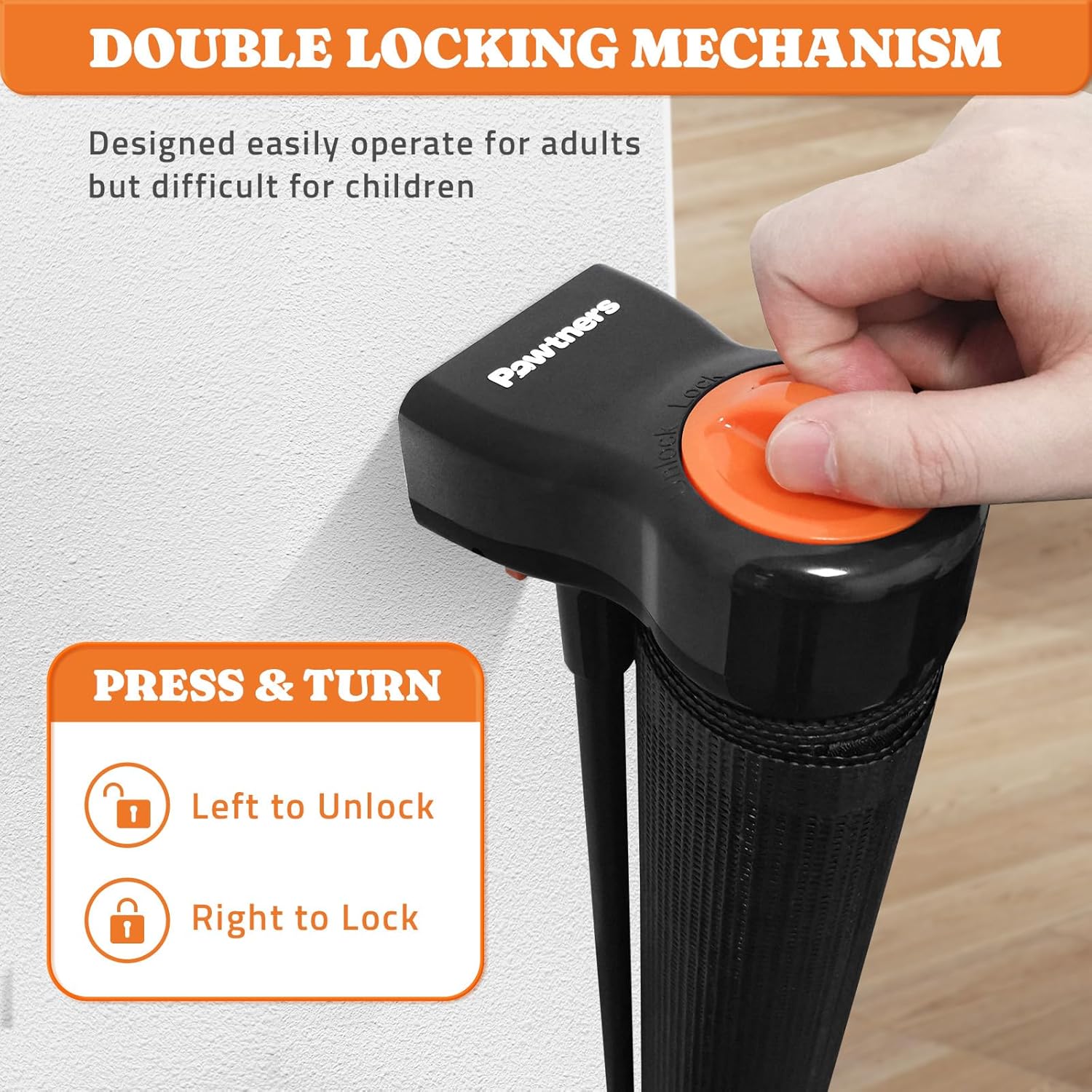 • Double Locking Mechanism: The knob (Press & Turn Design) at the top of the baby gate with cat door, especially the tall baby gate, ensures easy use for adults--open and close with one hand. Meanwhile, curious little ones won't be able to unlock this secure safety gate